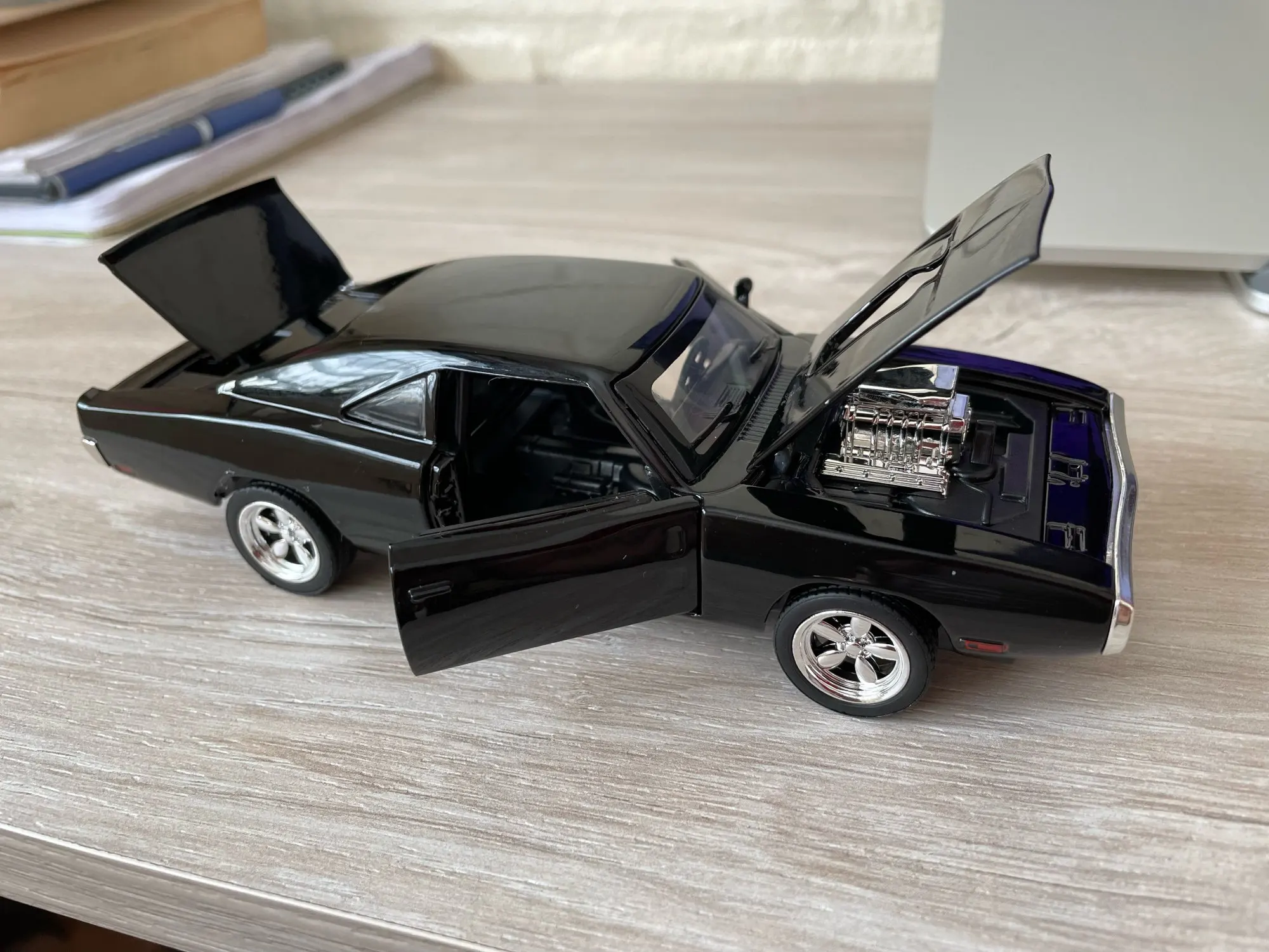 Modelo de coche de carga rápida y furiosa, modelo de coche de Dodge Charger, aleación fundida, caballos, modelos de vehículos musculares con iluminación de sonido, juguete para regalo, Colección 1/32