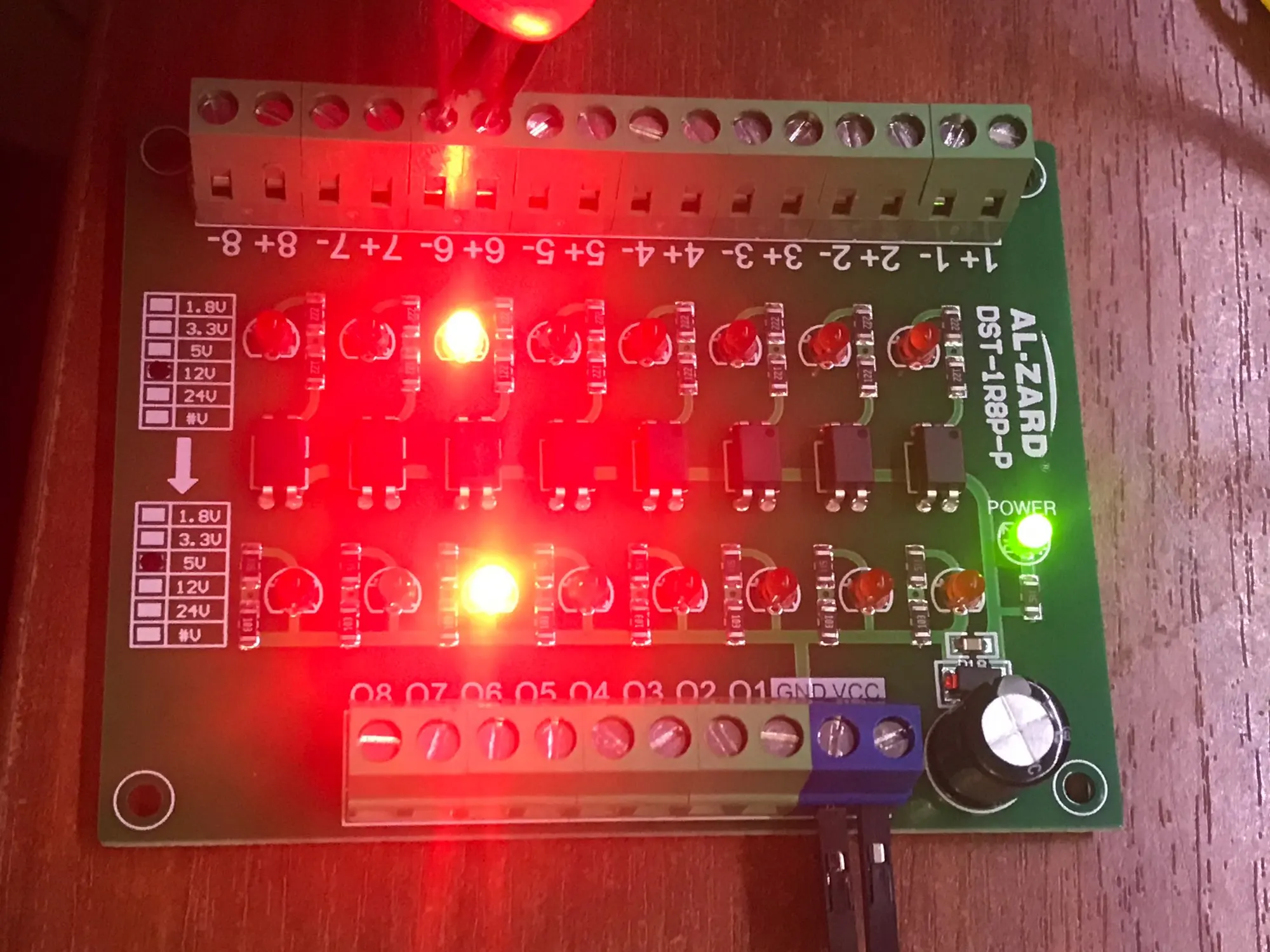 Módulo de aislamiento fotoeléctrico, convertidor de nivel de voltaje, salida PNP, módulo de señal PLC de 24V a 5V/5V a 24V/12V a 5V, 8 canales, 8 bits