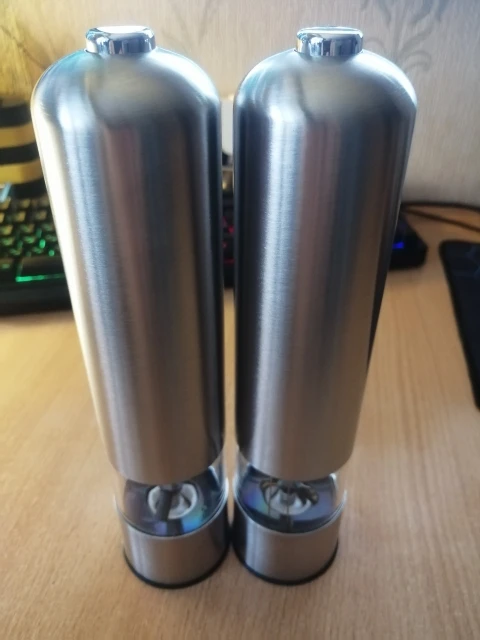 Molinillo de pimienta eléctrico de acero inoxidable, portátil, operación con una sola mano, molino de granos de especias con luz Led, afilador de cocina para el hogar