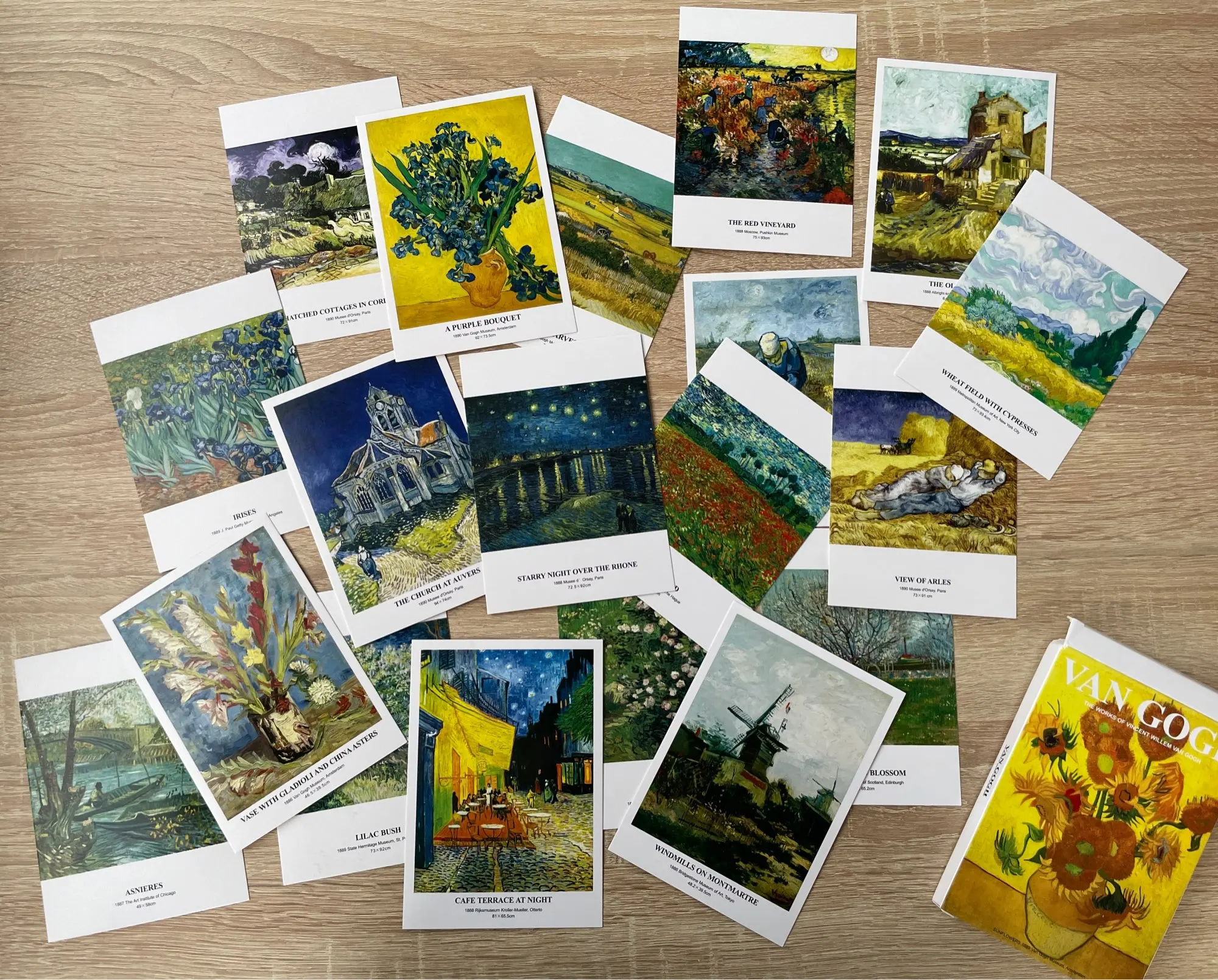 Monet-set de 30 hojas de sobres para postales de artistas famosos, tarjetas postales en inglés, ilustraciones, Serie de Museo de Arte, Picasso, Van Gogh