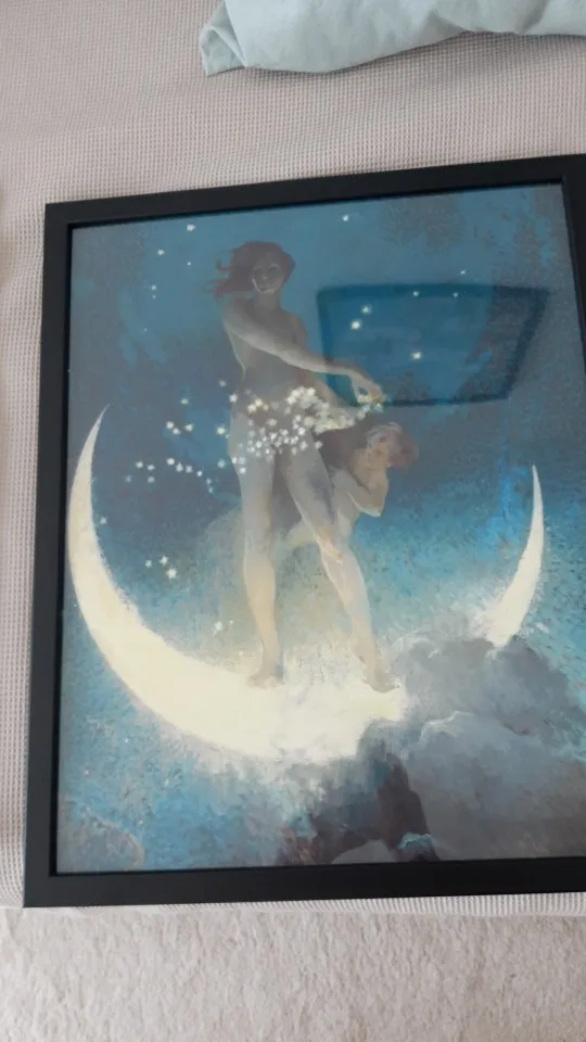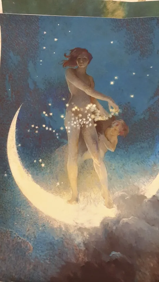 Moon Goodess-impresión artística de pared, póster Vintage Celestial, Primavera, estrellas, noche, luna creciente, lienzo, pintura de decoración