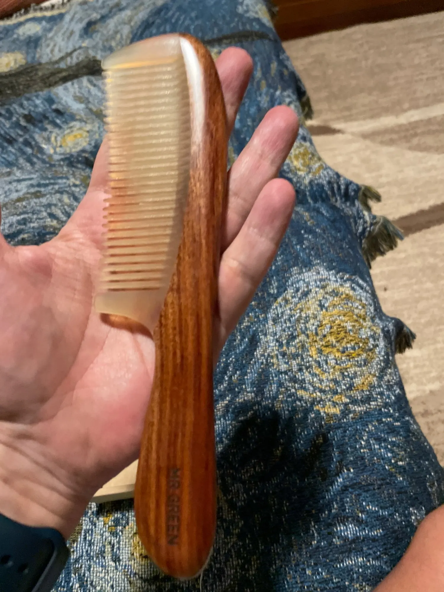 MR.GREEN-peine de madera Natural con cuerno Estructura de empalme, peine de pelo de diente fino, cabeza estática, regalo de masaje de punto de acupuntura