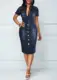 Mujeres Sexy Turndown Collar de algodón Bodycon Jeans vestido botones Verano de talla grande 2022 Party Club vestido de tela vaquera señora vestido