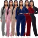 MVGIRLRU-traje informal de pana para mujer, chaqueta de bolsillo con solapa y pantalones elásticos de cintura alta, traje de dos piezas