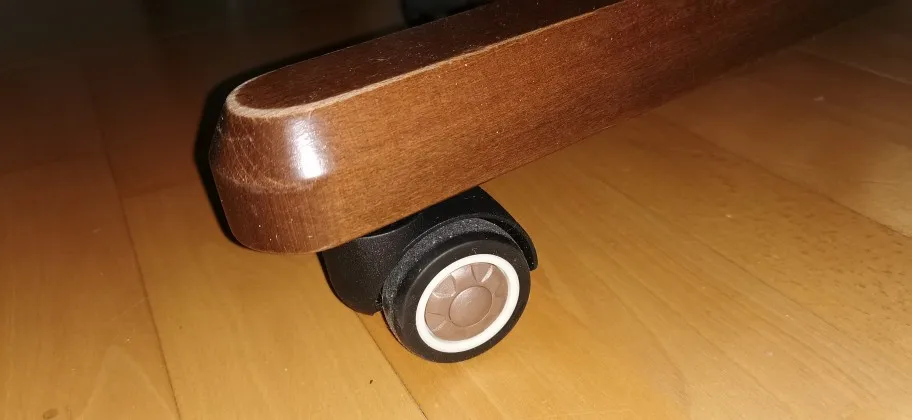 WOW!! 13 días en la puerta de la casa de Chile. El marerial de las ruedas es como una goma que no se pega al piso y se desliza suavemente por el laminado sin dejar rallas. Recomiendo al vendedor.