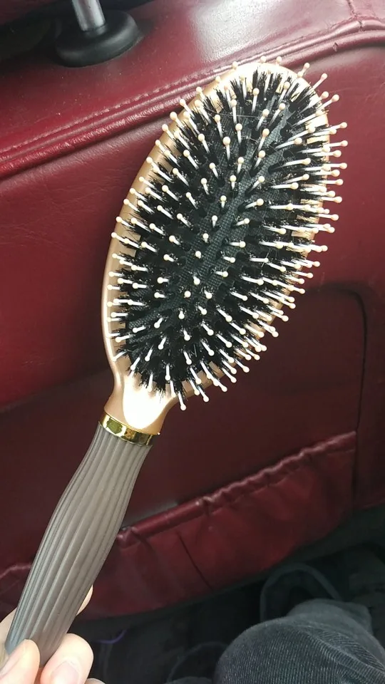 Natural cerdas de jabalí masaje peine Anti-estática cuero cabelludo del pelo del cepillo de mango de aluminio del cepillo de pelo que labra la herramienta