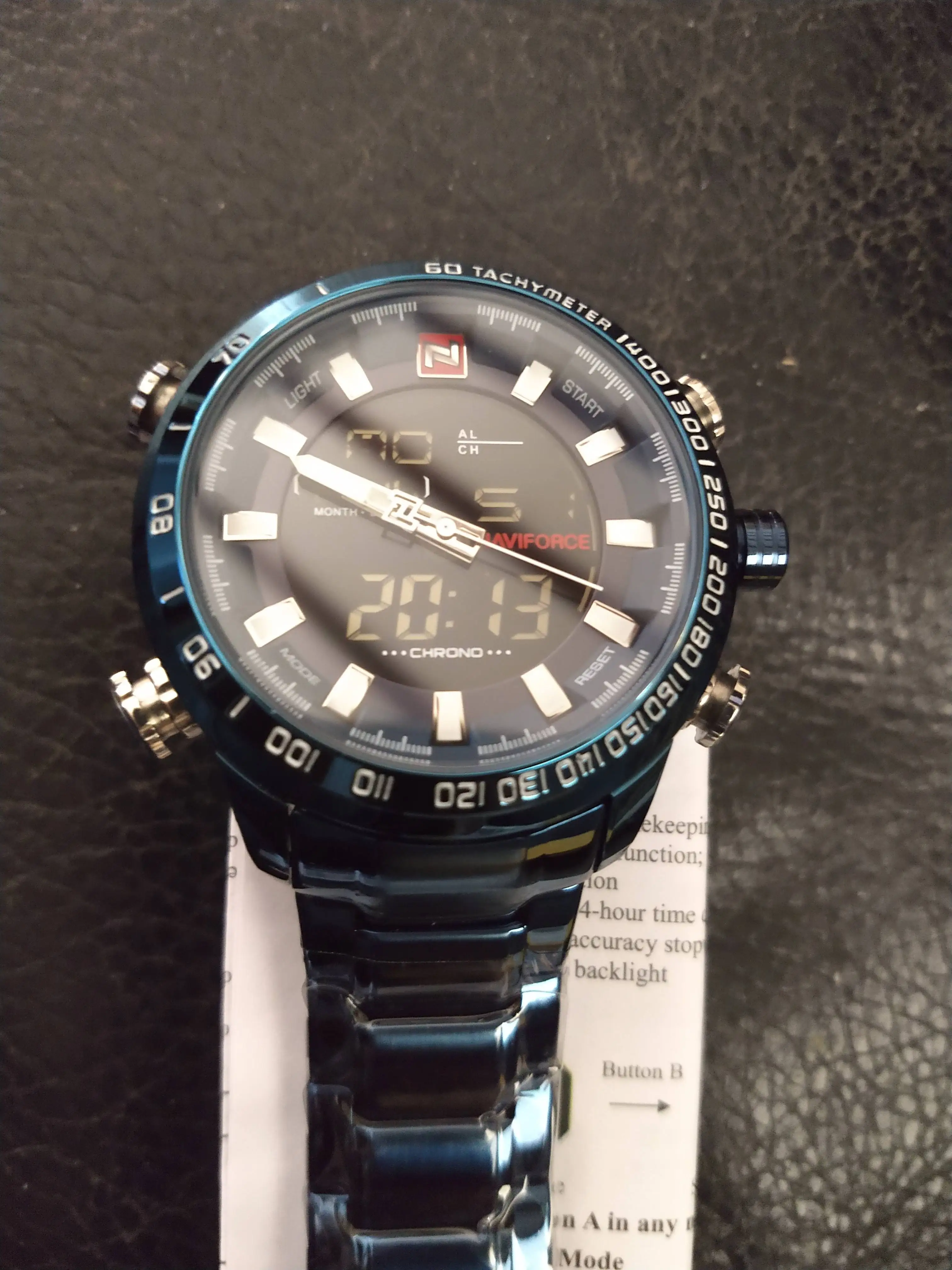 NAVIFORCE-relojes digitales de acero para hombre, de cuarzo, resistente al agua, azul, Masculino