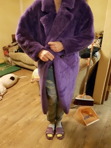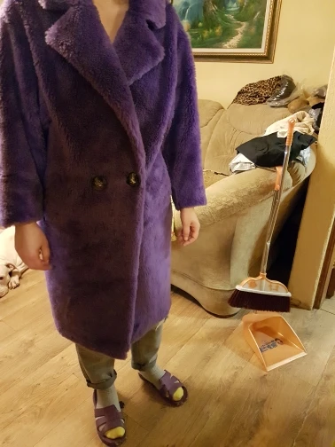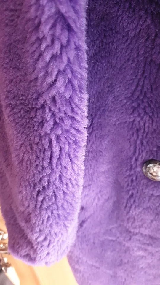 Nerazzurri-abrigo de piel auténtica de oveja para mujer, abrigo largo de oso de peluche, doble botonadura, cálido, Morado, abrigo de piel de oveja de gran tamaño 2022