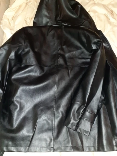 Nerazzurri-Chaqueta de piel sintética para mujer, abrigo negro de gran tamaño con capucha, manga larga, hombro caído, cremallera, de talla grande, Primavera
