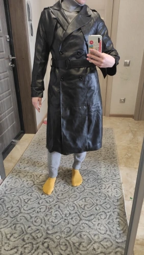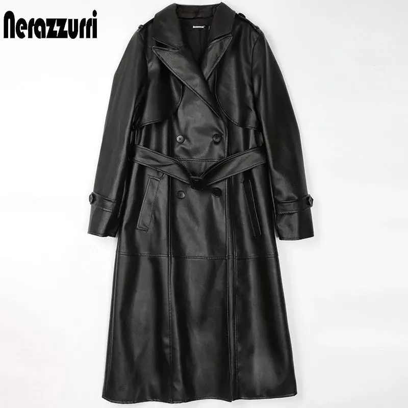 Nerazzurri-gabardina larga de imitación de cuero negro para mujer, cinturón de manga larga, doble botonadura, de talla grande, moda de otoño para mujeres, 7xl, 2022