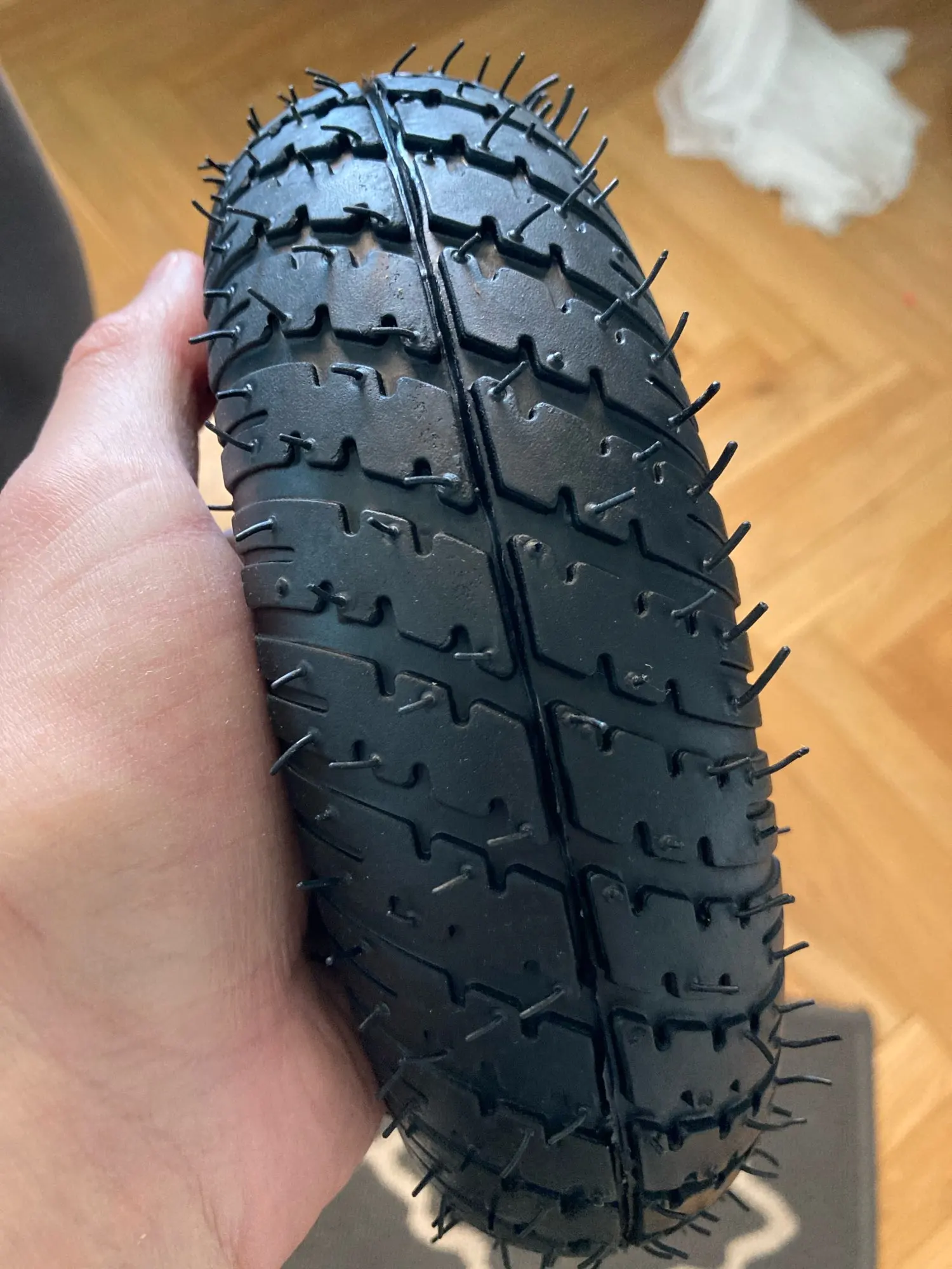 esperaba que fueran de caucho como las originales, pero son de un material que parece plástico para una silla de ruedas es un peligro