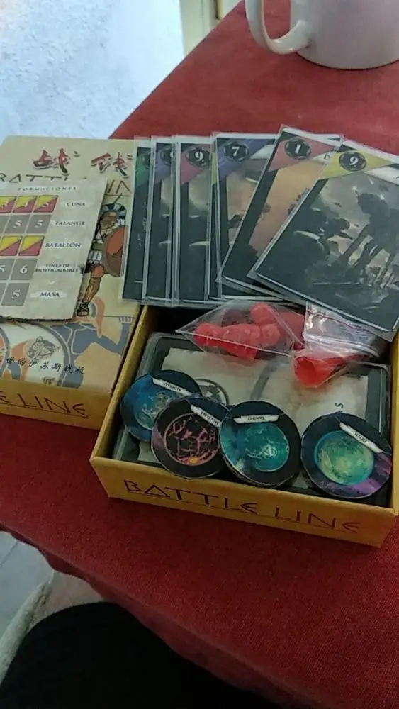 Exactamente como se indican en las fotos. Muy rápido, poco más de una semana. Las cartas no son de mala calidad, incluso se podría jugar sin enfundar. El único problema, como es obvio, que están en chino; esto para las cartas de táctica podría suponer un problema, pero únicamente son 10. Para todo lo demás, bgg y recomiendo un mod para starwars que lo hace chulísimo el juego (subo fotografía del mismo).