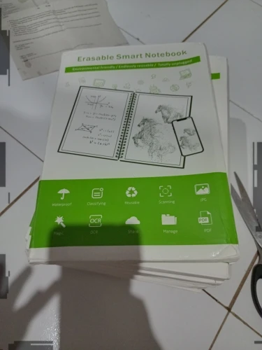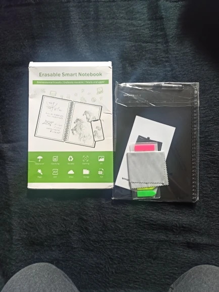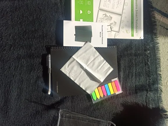 ALUCINANTE, me ha llegado en 2 DÍAS!! Fiel a la descripción, en su cajita con un trapito para borrar mojándolo un poco y con un boli especial para este cuaderno. La goma de atrás del boli también sirve para borrarlo. Encantada con la calidad y la rapidez del envío