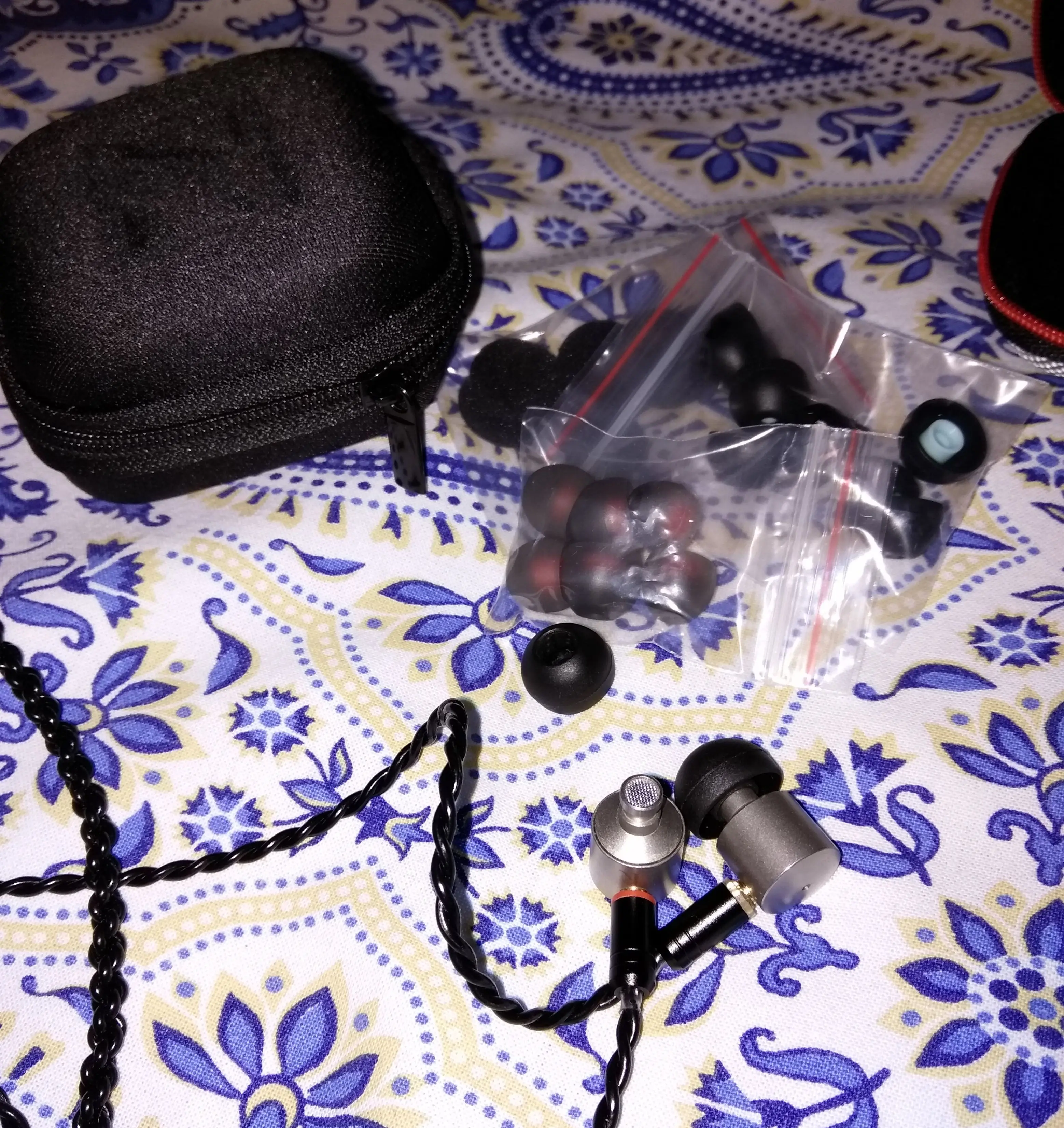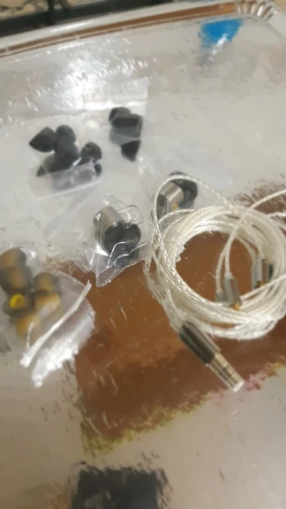 Del sonido de estos iems solo puedo decir WOW! La verdad es que cuando los pedí me resultaron un poco caros. Pero llevaba tiempo encaprichado de ellos y al final los compré (opción sin cable). Cuando me llegó el paquete, venia una bolsita de cuero negro y dentro venían los auriculares en una bolsita de plástico, y dos bolsitas más con sendos juegos de 3 pares de almohadillas de silicona, unas amarillas y otras rojas. Normales. Nada a destacar. Los auriculares traían otro juego puesto cubierto con una esponja parecida a la de los auriculares clásicos de siempre. Me temía lo peor. Pero mis temores desaparecieron nada más empezar a escuchar el sonido. De 10. Tengo que darles un tiempo, pero diría que son los que mejor suenan dentro de mi enorme colección de iems. De momento, muy satisfecho. Cómo pero, la conexión MMCX. En ocasiones falla. He probado varios cables de mi colección y ya he encontrado alguno que parece solucionar el problema.