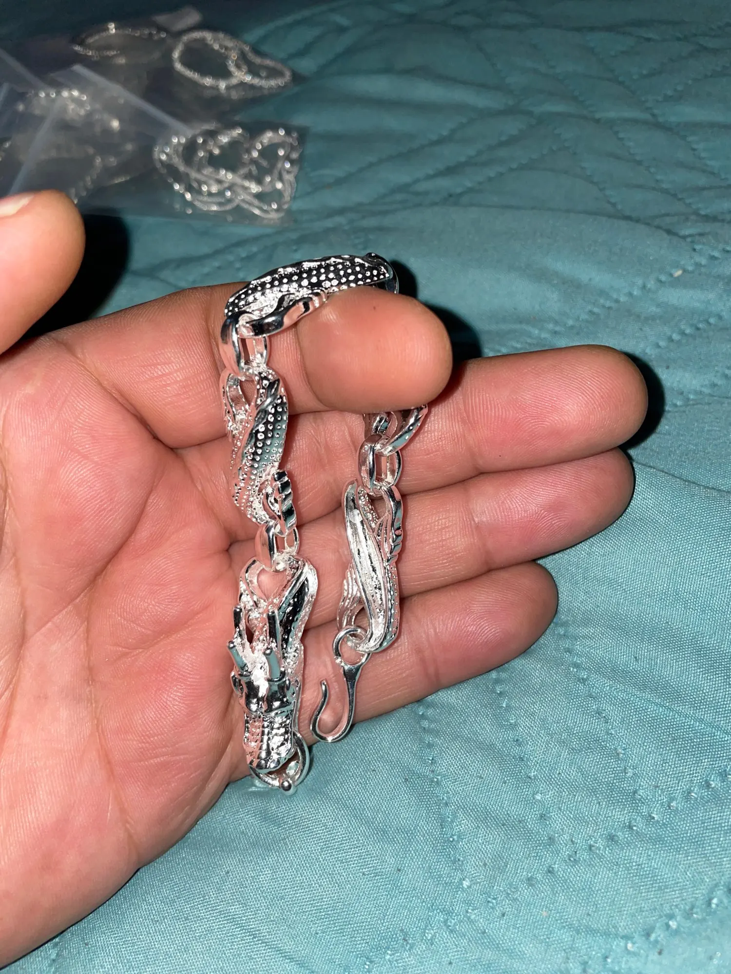 De muy mala calidad las terminaciones son muy feas nunca ha sido de plata tampoco trae el sello demoró mucho en llegar
