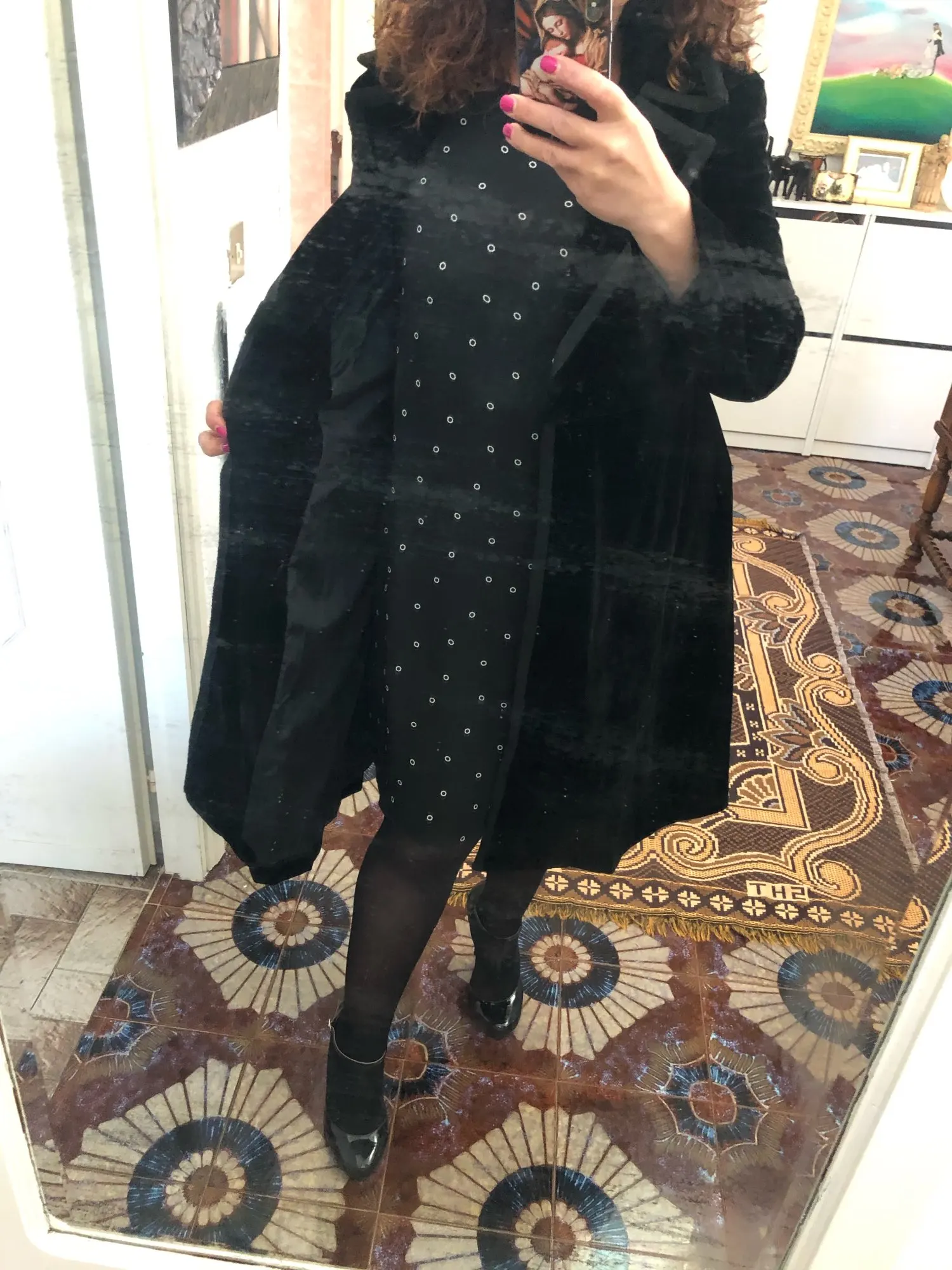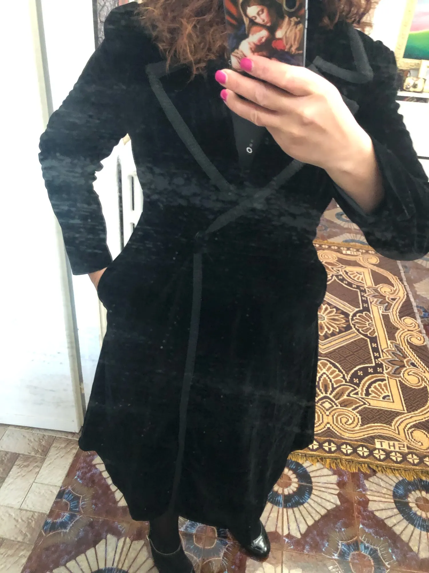 El abrigo es bonito y largo.Lo que no me fusta mucho es la forma de la manga a la altura del hombro,pero en general está bien.