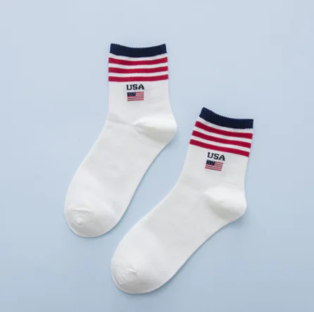 Nueva moda Casual bandera blanca calcetines de los hombres de la marca feliz calcetines creativos de algodón calcetines hombre