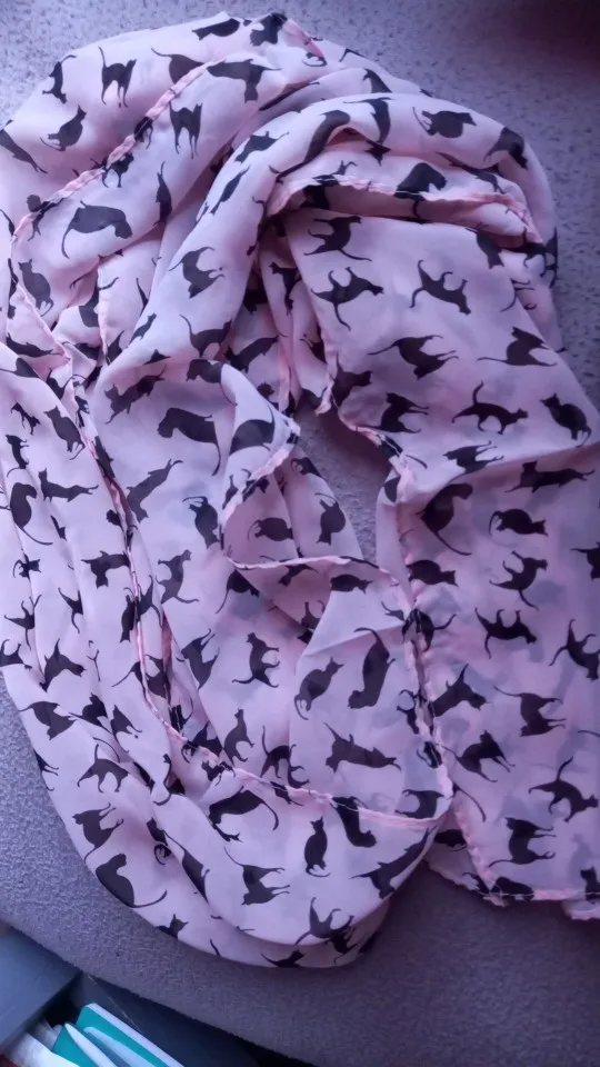 Nueva moda mujer chifón colorido impreso dulce dibujos animados gato gatito bufanda Graffiti estilo chal niñas navidad regalo