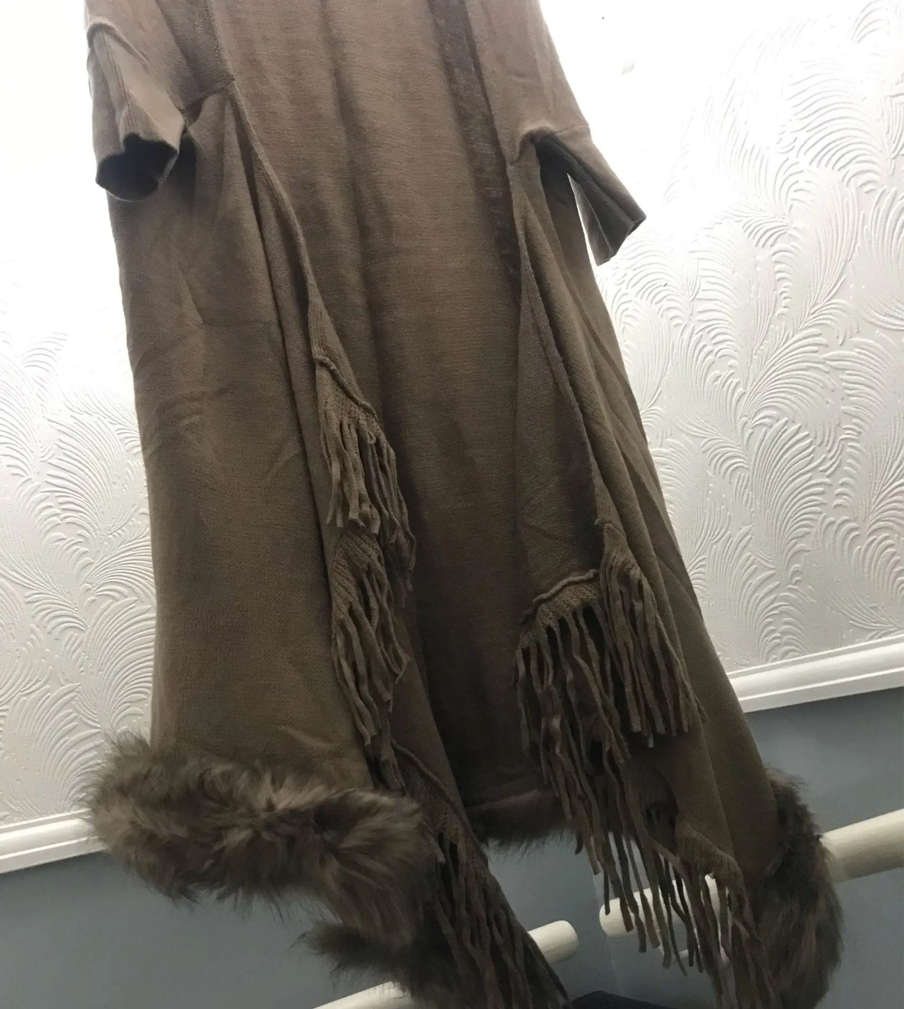 Nueva moda Primavera mujeres abrigo de piel sintética piel de zorro hierba Cuello de piel Ponchos y capas señora púrpura chal capa de lana abrigo de piel