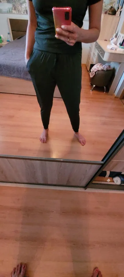 Mejor de lo que esperaba. Creía que la calidad de la tela sería mala y todo lo contrario. Es una tela deportiva agradable, no demasiado artificial y con los lavados se mantiene muy bien. Los pantalones son increíbles y son en la parte de la cadera un poco "cagados", lo cual para mi gusto queda muy bien.