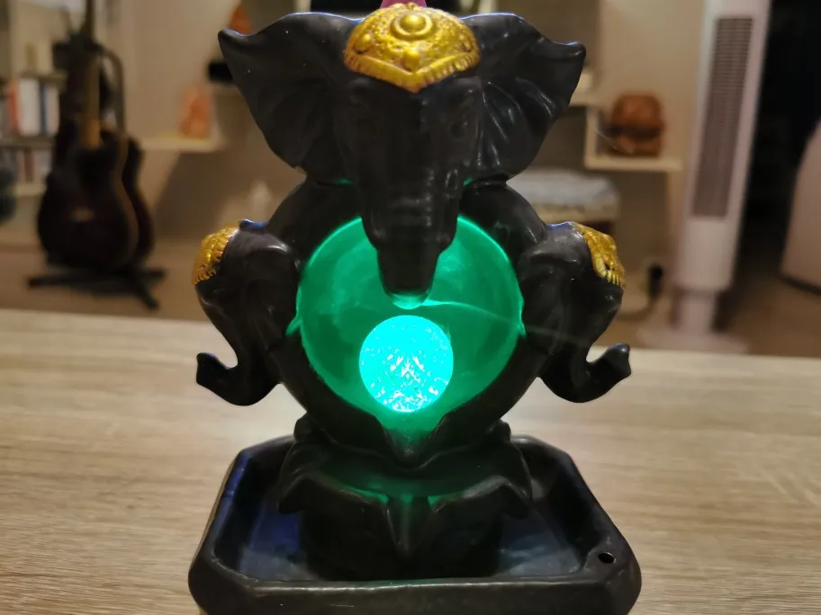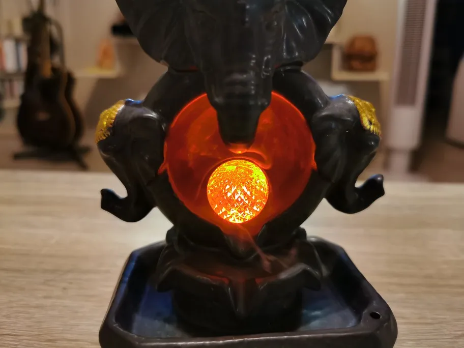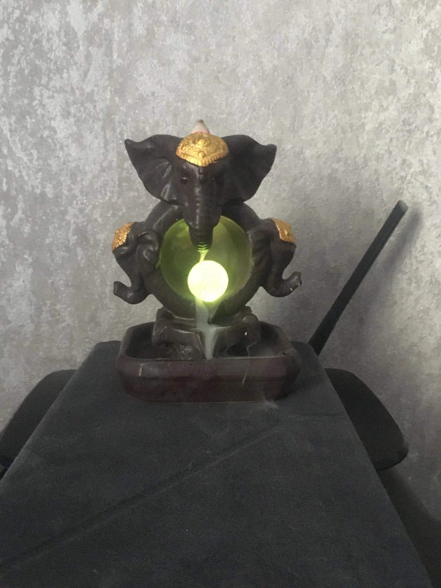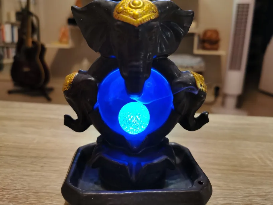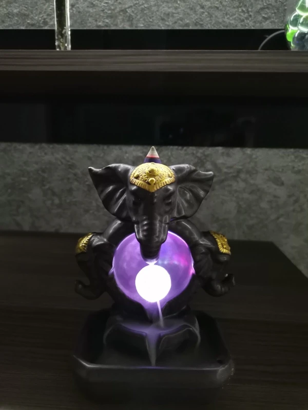Nueva suerte Feng Shui dios elefante estatua artesanía decorativa para hogar de cascada quemador de incienso con Led bola que cambia de Color