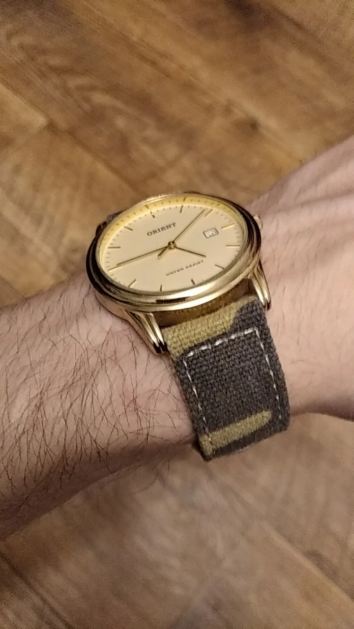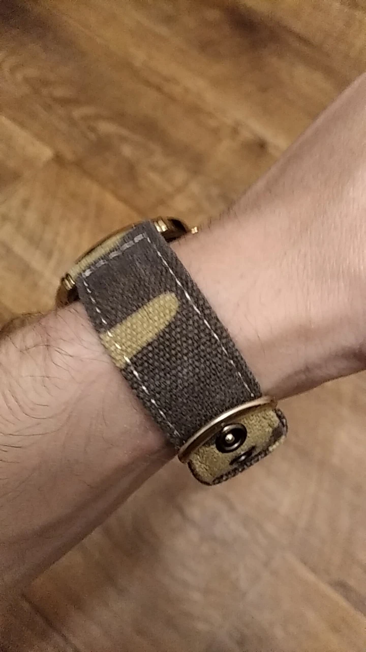 La correa de camuflaje marrón es muy chula,es de color mate casi igual a la foto que muestran y con los agujeros grandes.