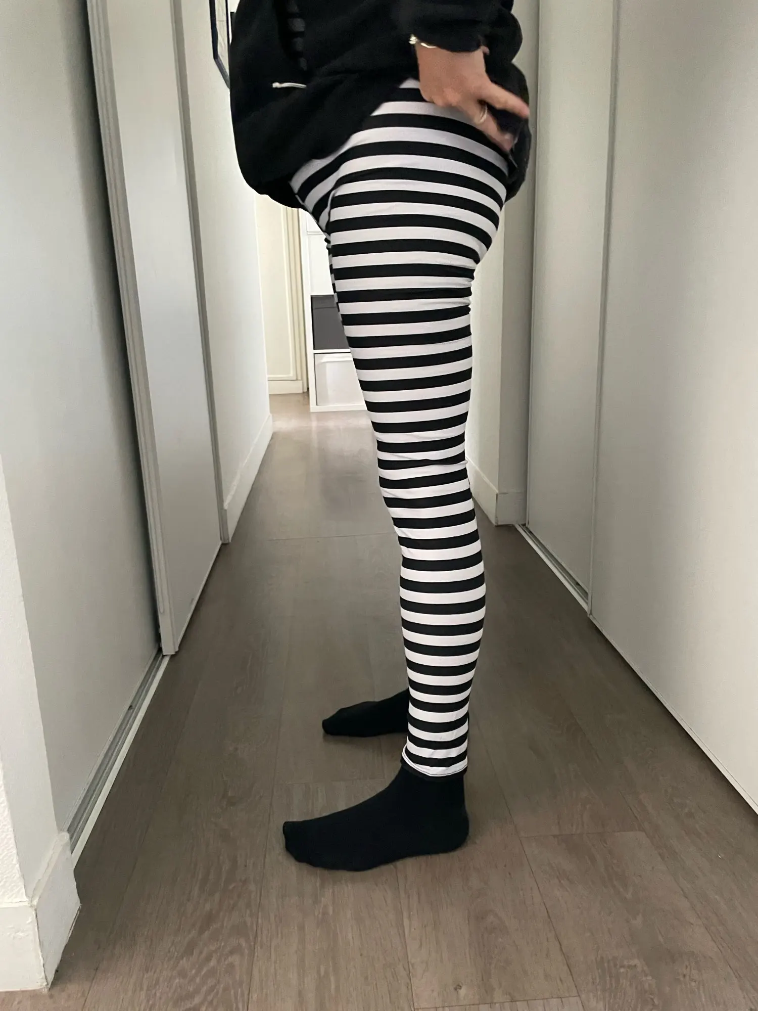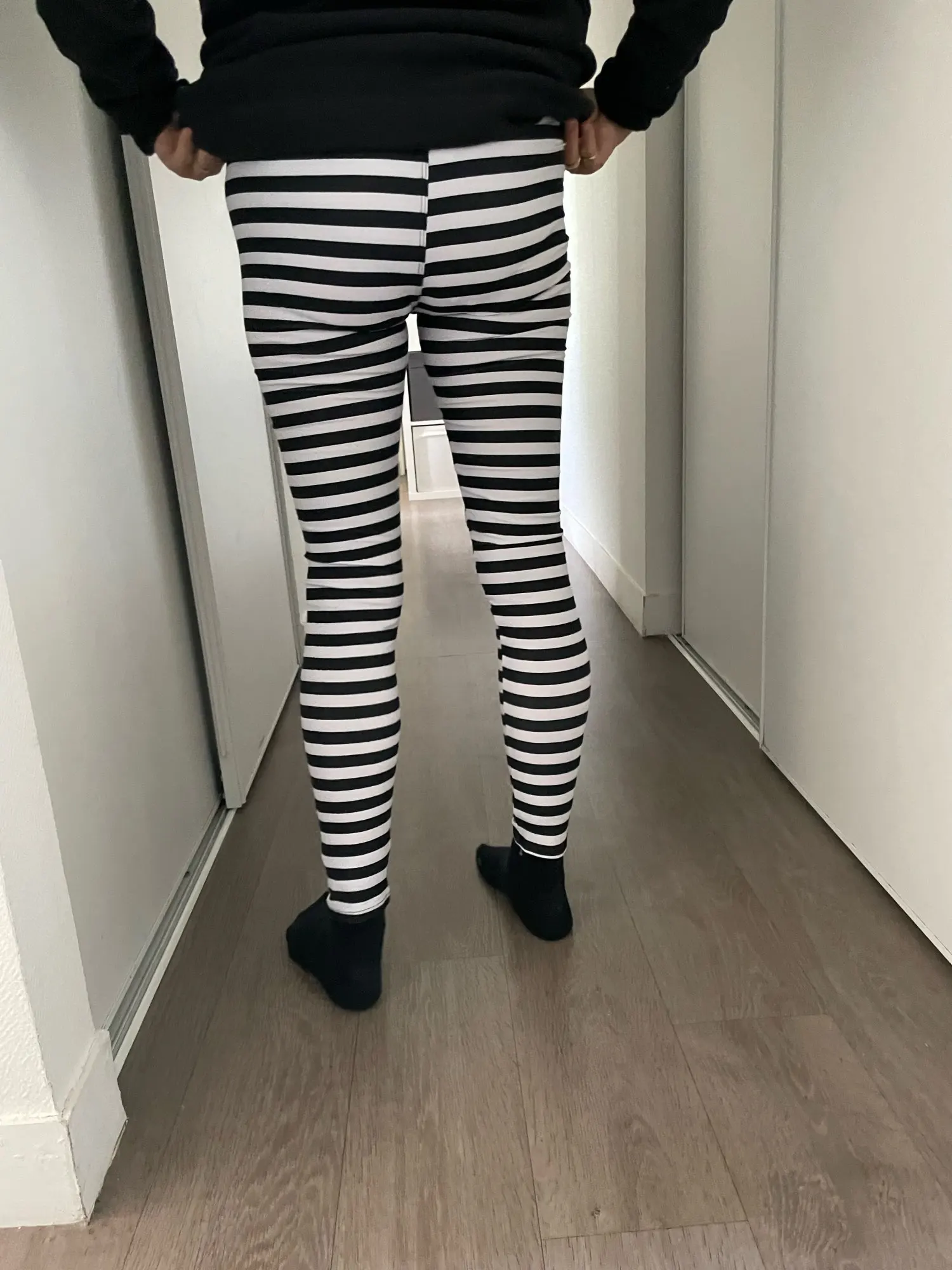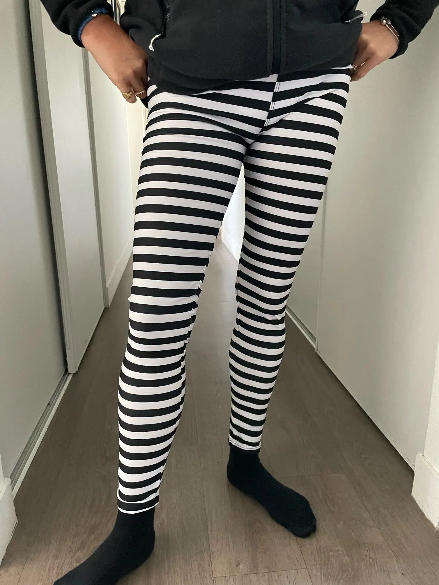 Nuevo caliente de talla grande mujer Casual negro blanco rayas elástica ancha rayas estiramiento de las polainas pantalones largos caliente
