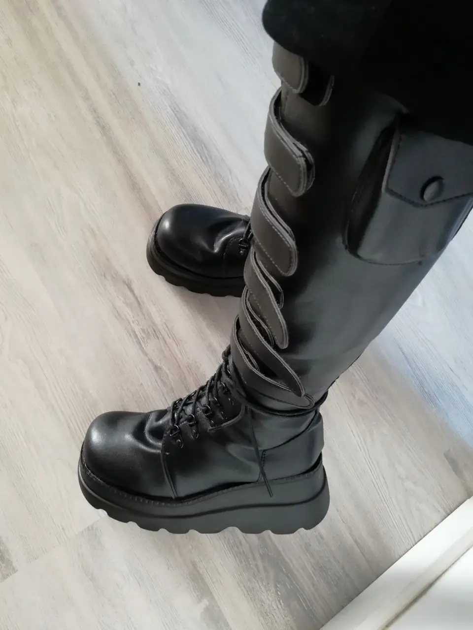 Nuevo diseño de marca, talla grande 43, cordones para motocicletas, botas, cuñas de plataforma femeninas, tacones altos, botas de media caña, zapatos de mujer
