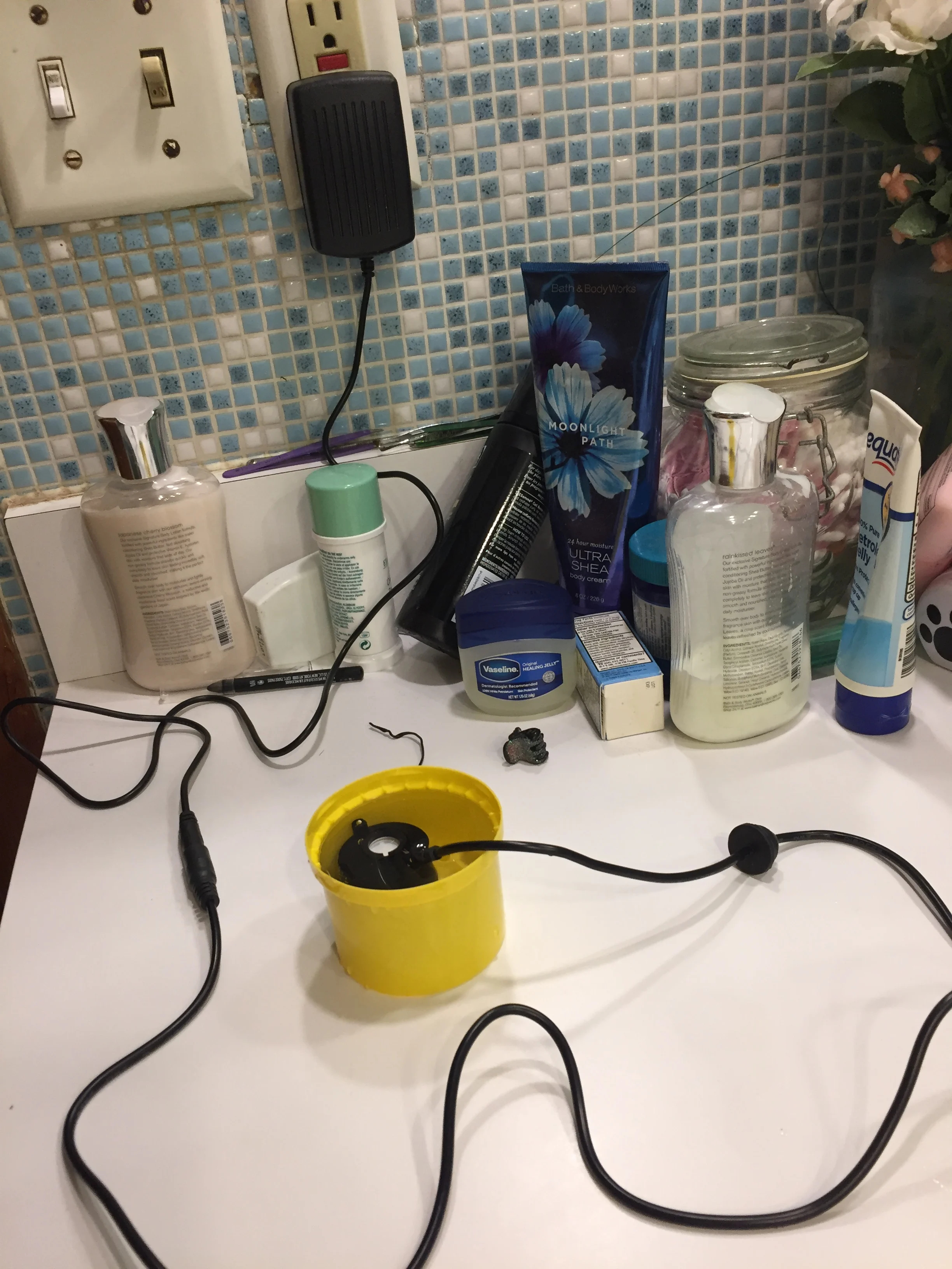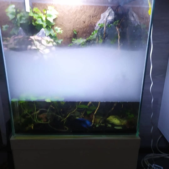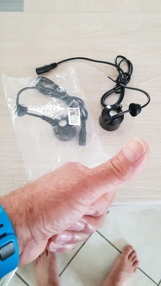 Cable marrón es + . Verde -. Aproximadamente 250 gramos de niebla por hora. Intensidad, 0.4 Amperios.