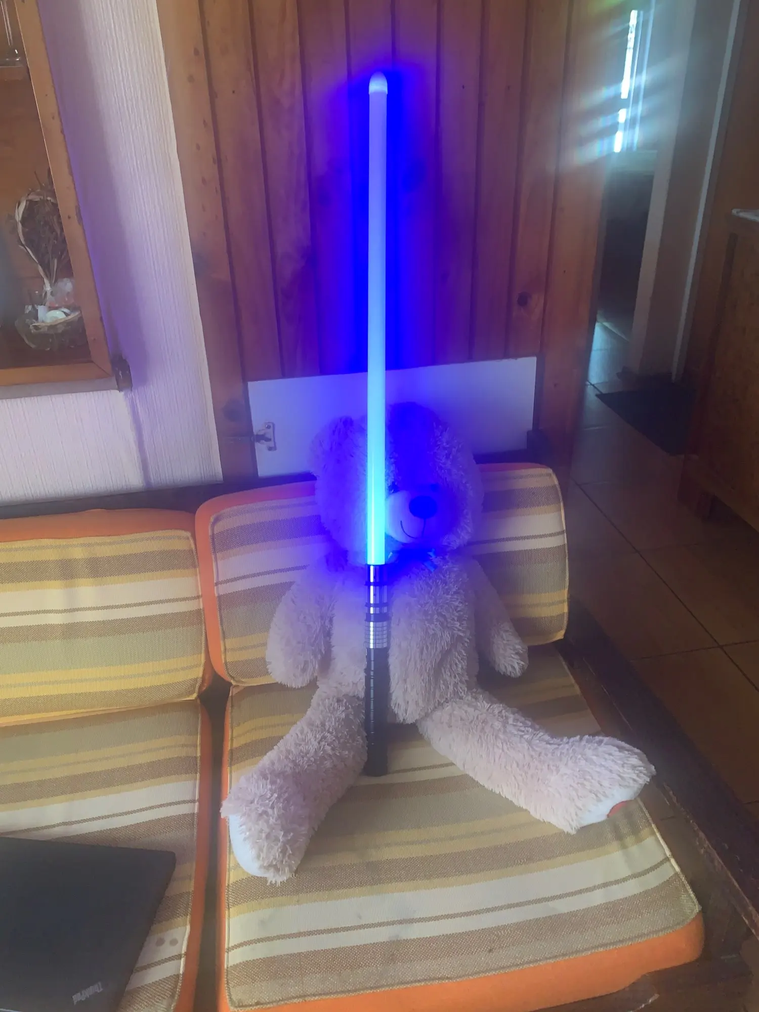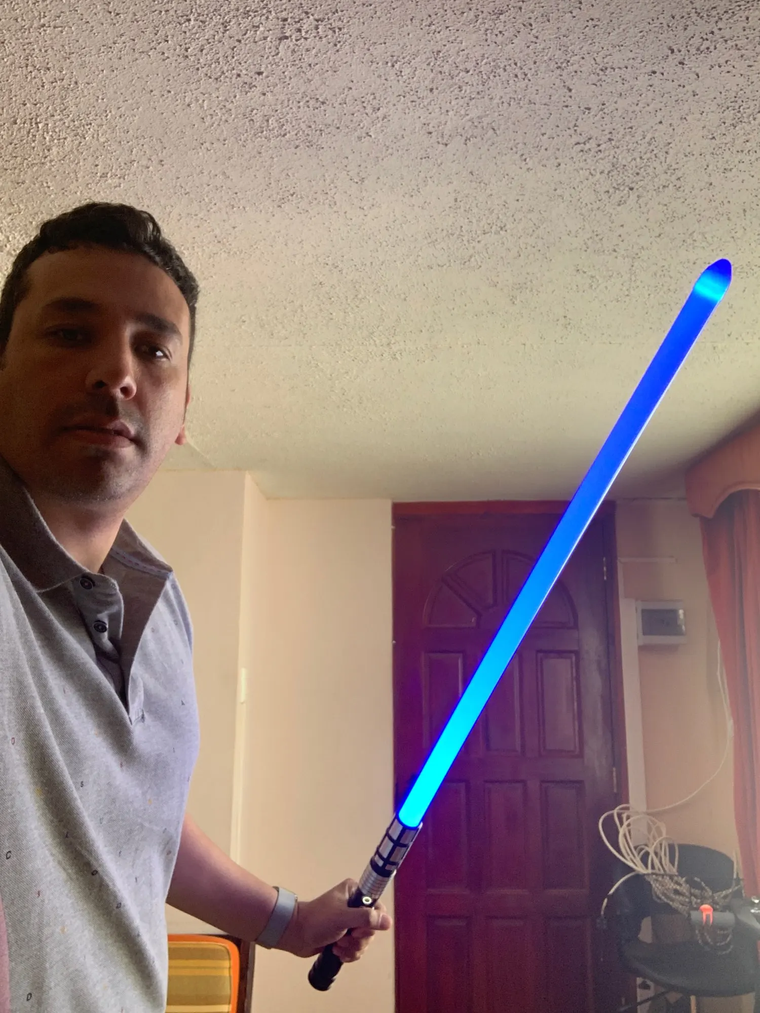 La base del sable es perfecta, su sonido es excelente, pero o no llego completo o no esta bien descrito, si trae la luz led, pero no trae el sable o sea es el mango con todos sus sonidos y luz, pero no trae el sable solo recibí el mango con su luz es bello suena muy bien, pero y el sable o solo es el mango con sonido y luz, solo trae un color de luz o no lo se manejar no bienen mas instrucciones que el mango y su cable para cargar la batería... Gracias