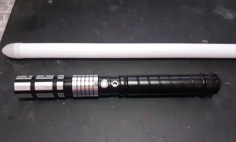 La terminación de la empuñadura es estupenda. Es verdad que el embalaje deja mucho que desear, pero a mi me ha llegado en perfecto estado. La calidad del sonido es bastante buena, aunque algunos movimientos no los detecta. La intensidad del LED es muy buena. Por el precio que tiene y viendo lo que hay por el mercado es una compra más que recomendable.
