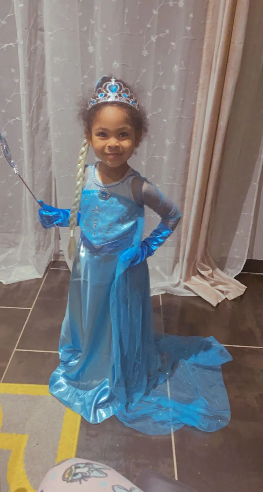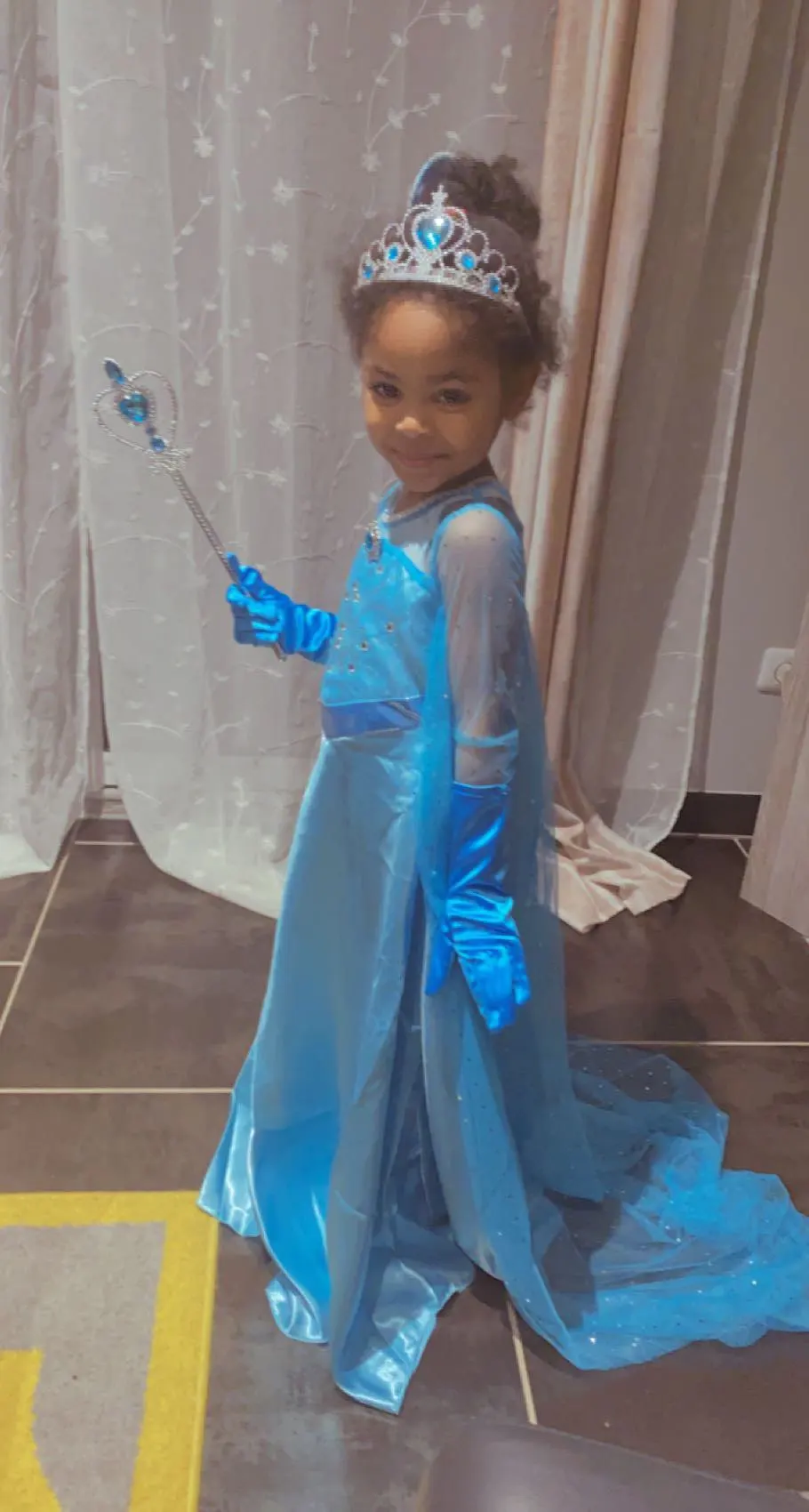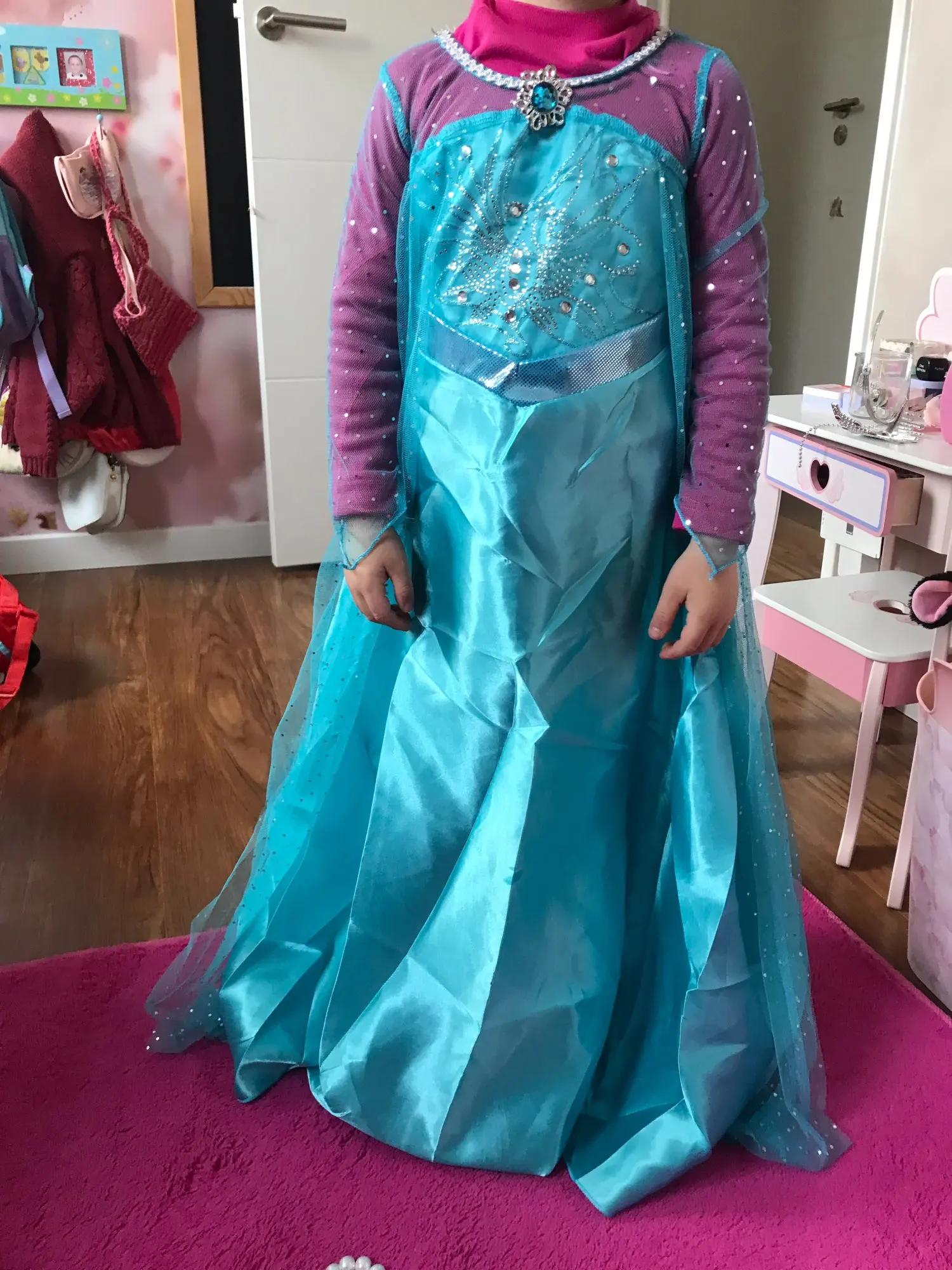 Talla 130 muy bien para una niña de 1m11cm y 22 kilos. La tela es un poco delicada. Vino rápido de China pero demoraron entregarlo en mi país.