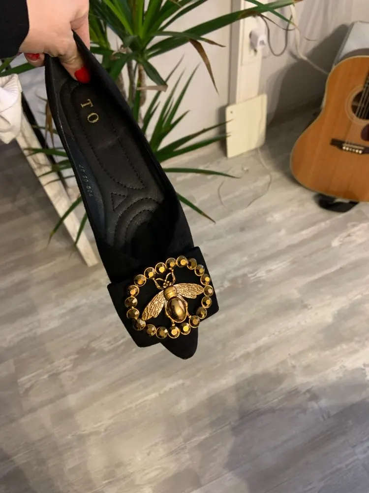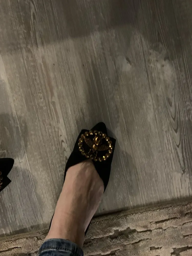 Nuevos zapatos planos de gamuza de gran tamaño de diseñador de remache de mujer zapatos planos elegantes cómodos de señora de moda de diamantes de imitación mujeres suaves abejas zapatos