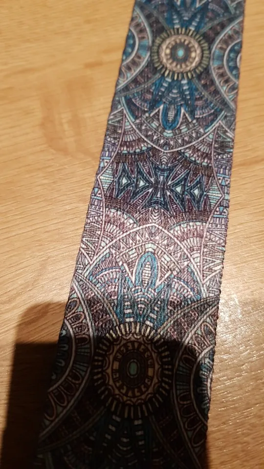 Exacta tal cual la descripción es preciosa, ajustable y de alta calidad, estoy encantada con mi compra.Nada que envidiar a grandes firmas.De dibujos geométricos que hacen efecto relieve.