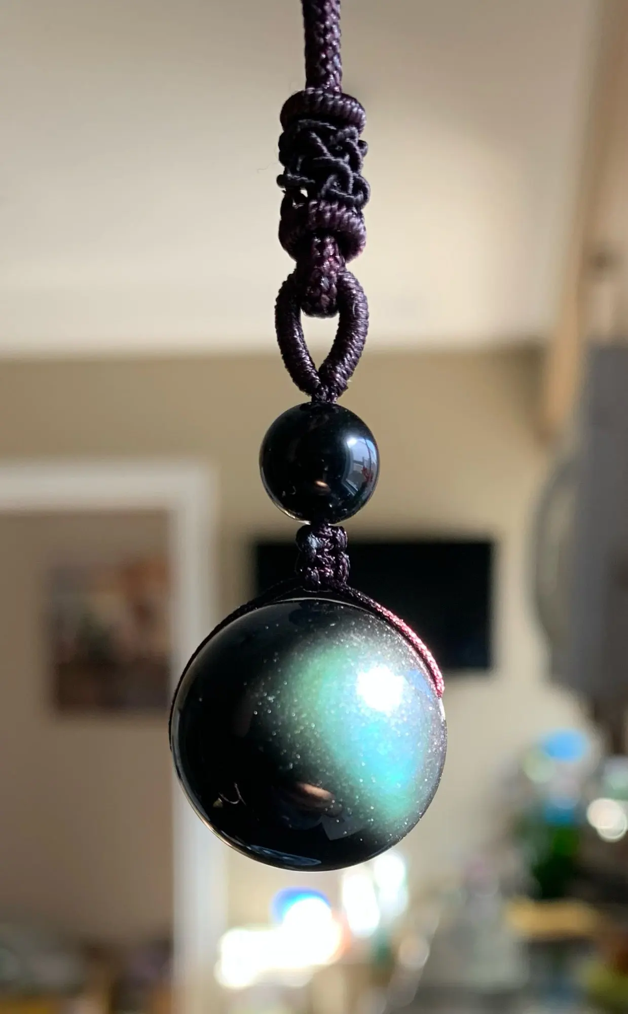 Obsidiana natural Ojo de arco iris de buena suerte colgante de cuentas de collar de cuerda de poliéster collar de cadena de joyería para mujer
