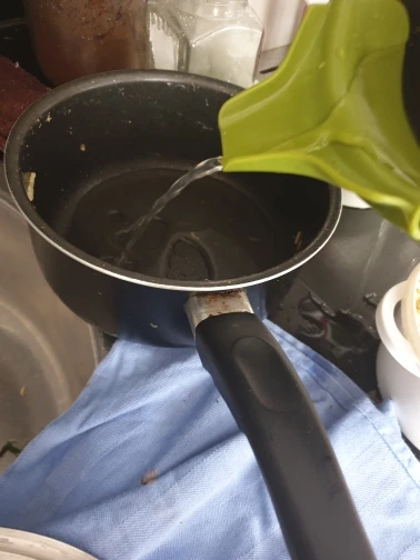 Tal como se ve en la Foto, derrama un poco el Líquido pero está bien.