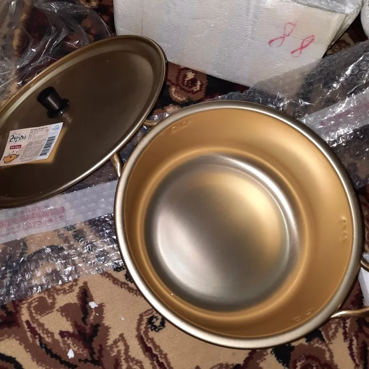 Olla de Ramen coreana para Fideos hervidos, olla de aluminio amarillo espesado, olla caliente de sopa de aluminio, utensilios de cocina dorados wok