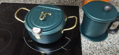Olla para freír de acero inoxidable con tapa y termómetro, antiadherente, Tempura