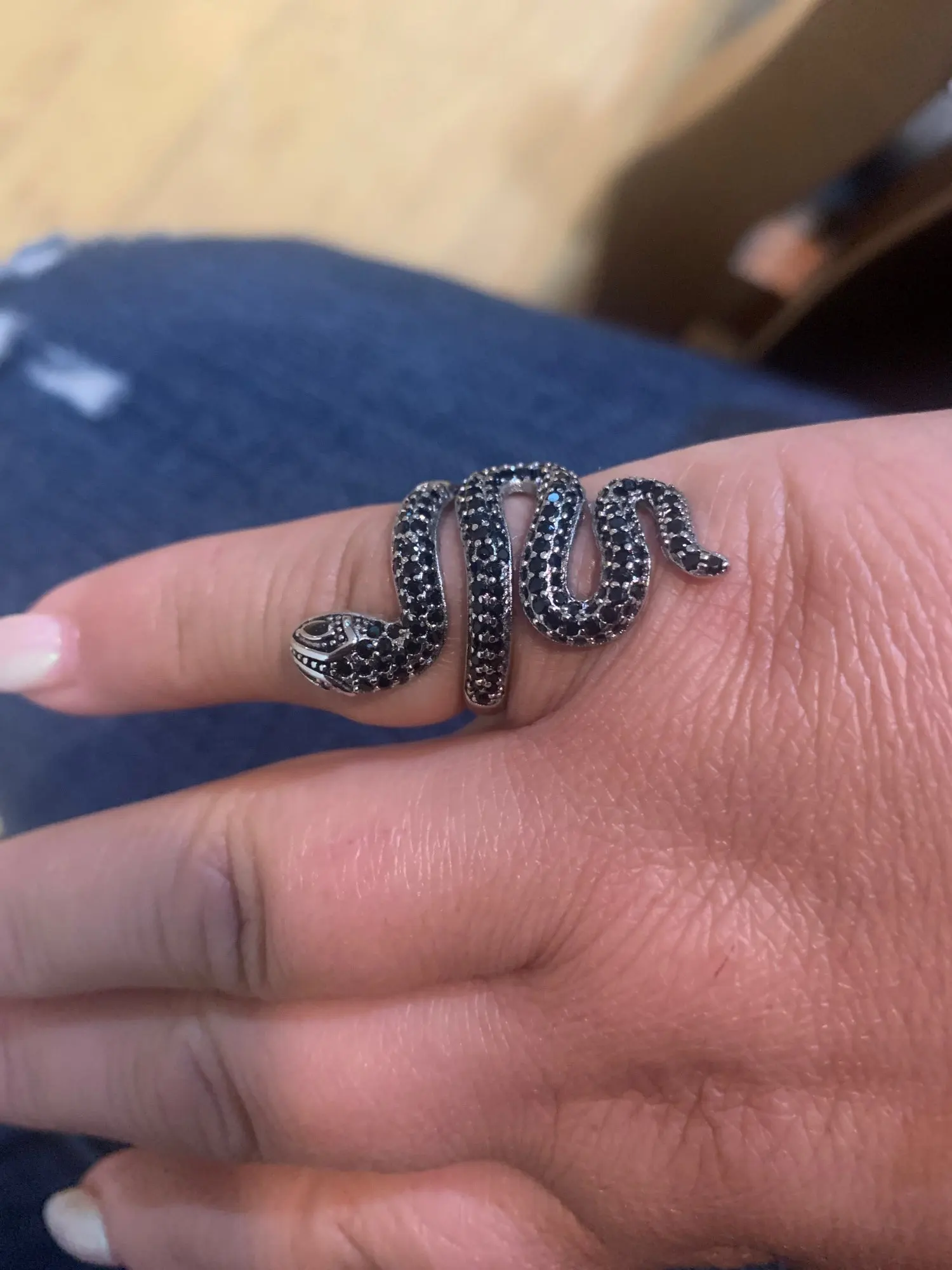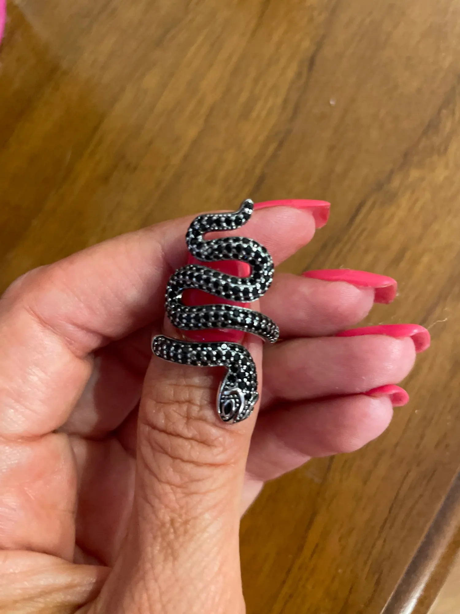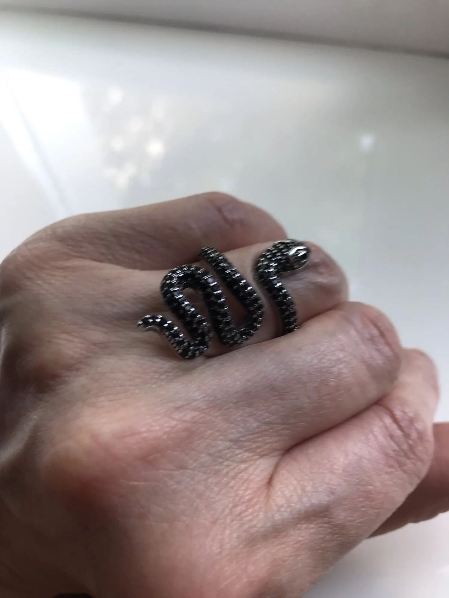 El anillo es igual que en la fotografía. Precioso y se ajusta abriéndolo un poquito a las necesidades del dedo. Merece la pena la compra.