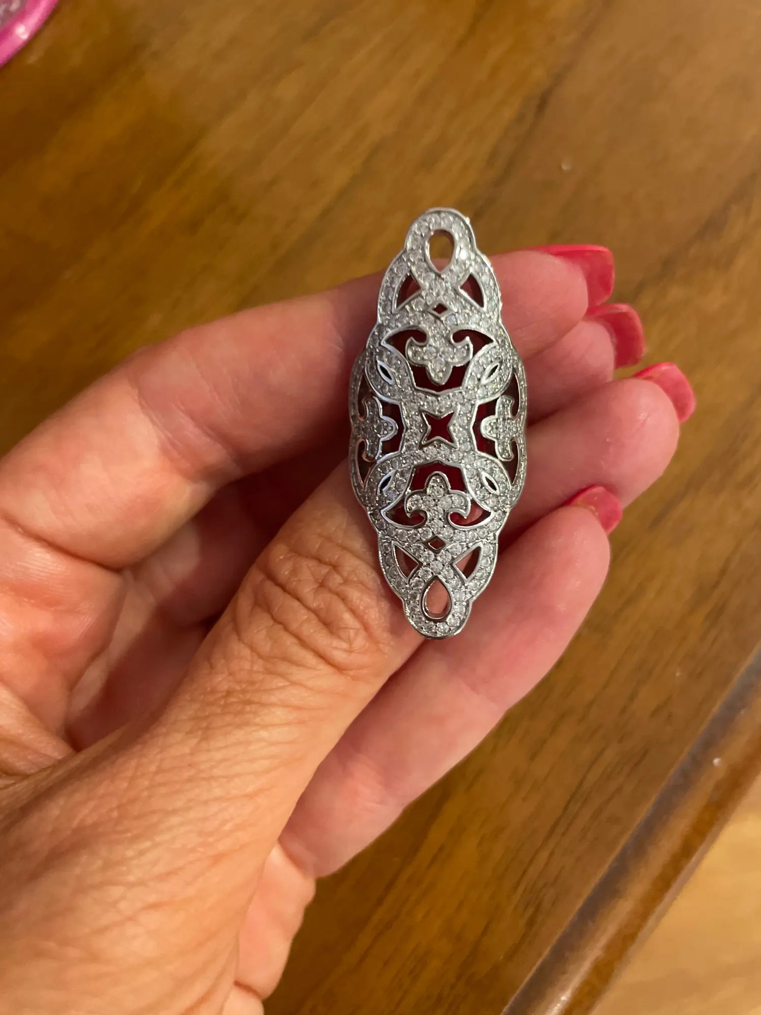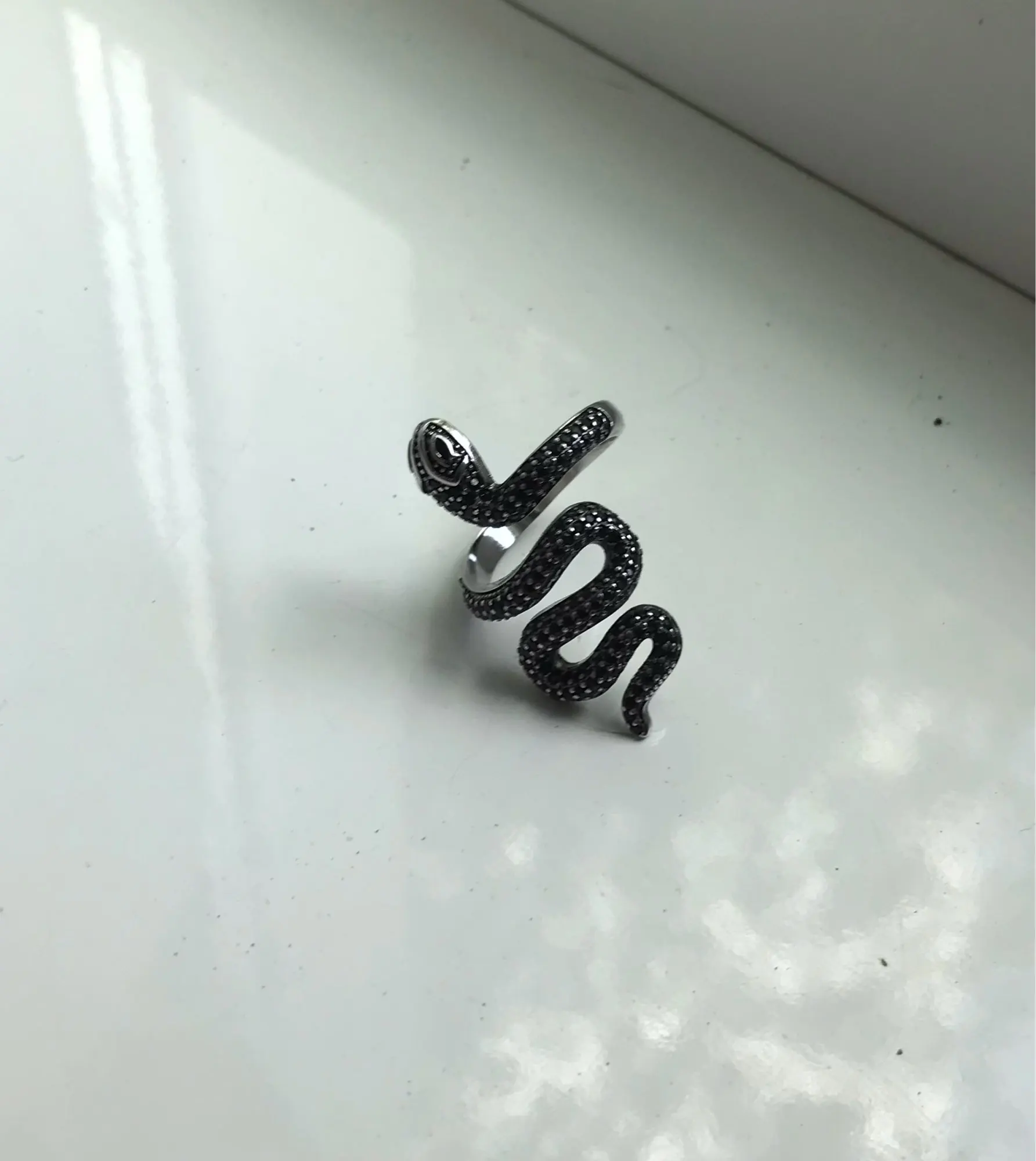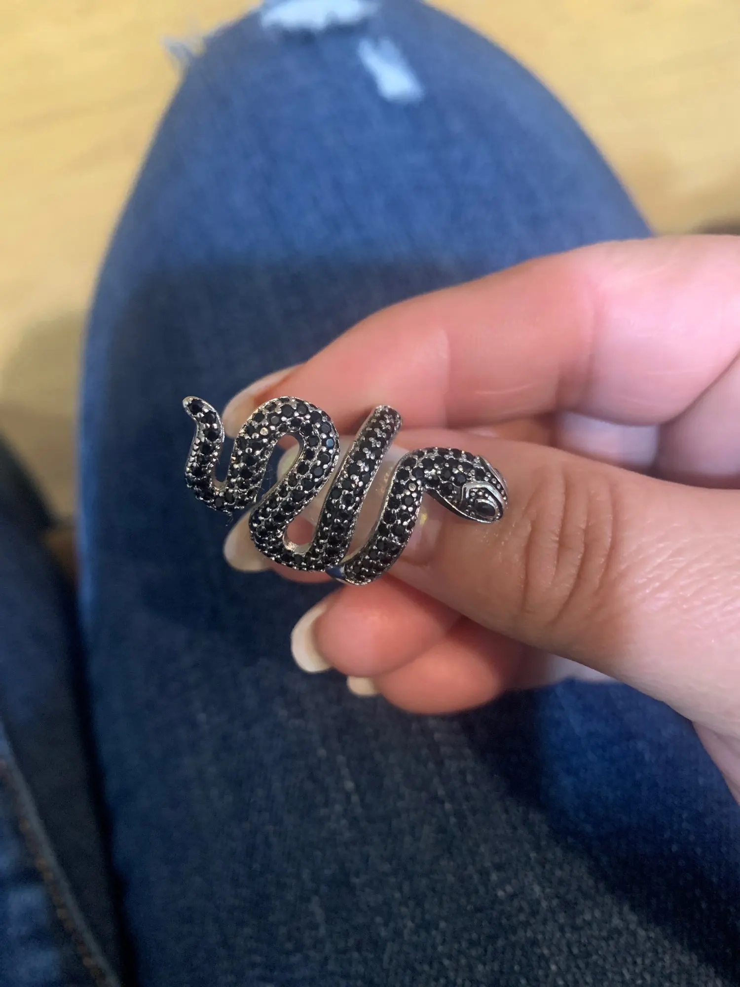 El anillo es igual que en la fotografía. Precioso y se ajusta abriéndolo un poquito a las necesidades del dedo. Merece la pena la compra.