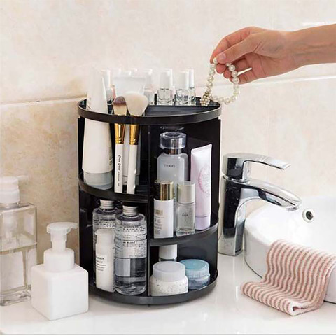 Organizador de almacenamiento de maquillaje, cajón de plástico para cosméticos, soporte giratorio de 360 grados, estantería de joyería, belleza desmontable