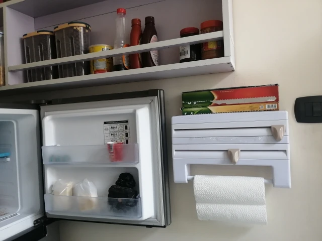 Organizador de cocina soporte para papel de cocina film transparente de titular de la botella de salsa de lata almacenamiento estante de papel de cocina