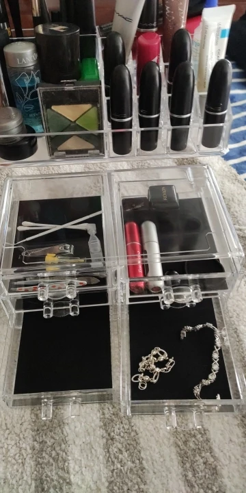 Organizador de maquillaje acrílico transparente para mujer, caja de almacenamiento de cosméticos de escritorio, soporte para pintalabios, esmalte de uñas, herramientas de maquillaje