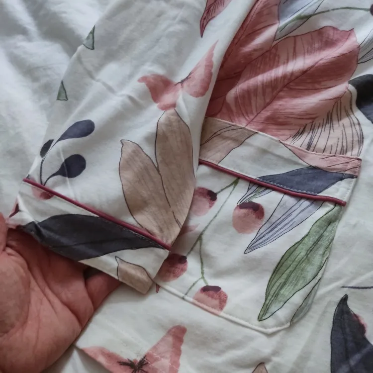 El algodón 100% , grueso y con hartos hilos, se siente al tacto un producto de muy buena calidad, también lo es el estampado , quedé muy satisfecha con el pijama!
