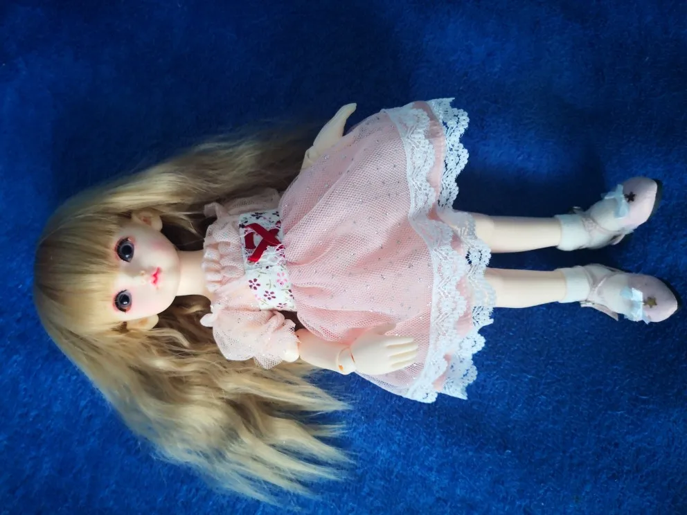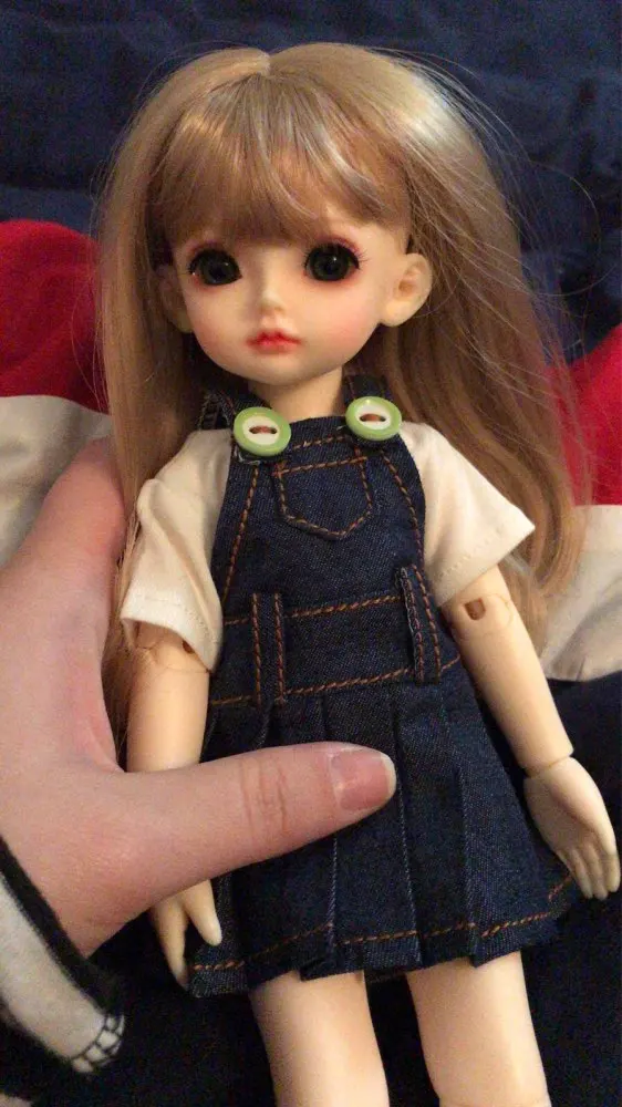 Preciosa, de gran calidad, aunque cuando abres la caja huele a pintura, pero desaparece al día siguiente. Antes de enviar la muñeca te envían un mensaje para poder escoger el color de ojos.
