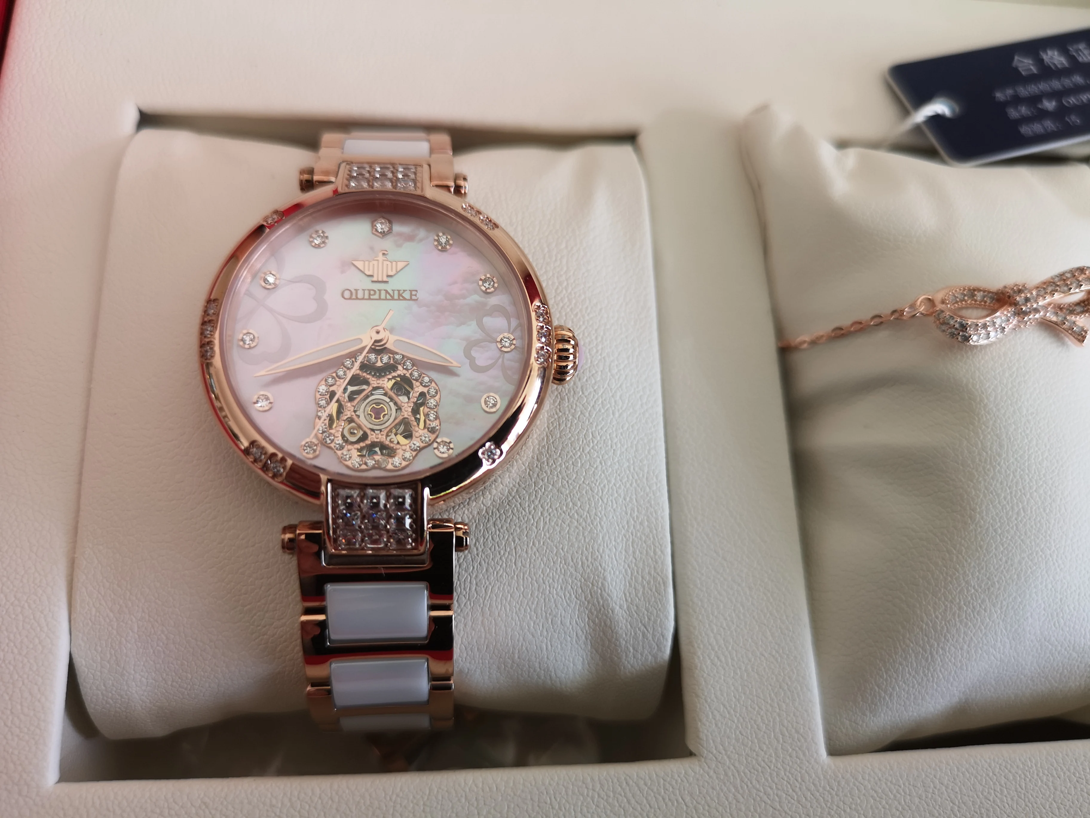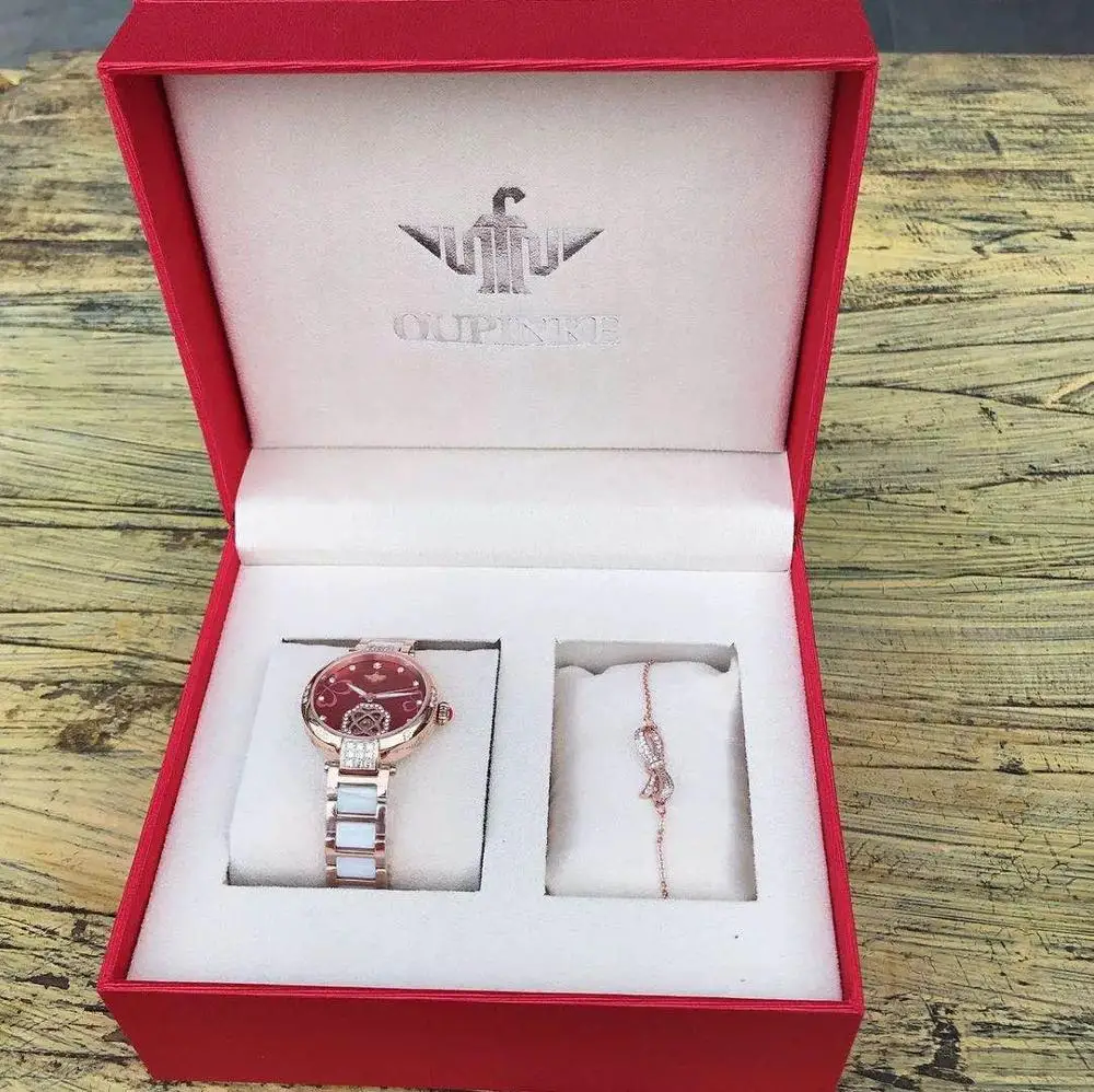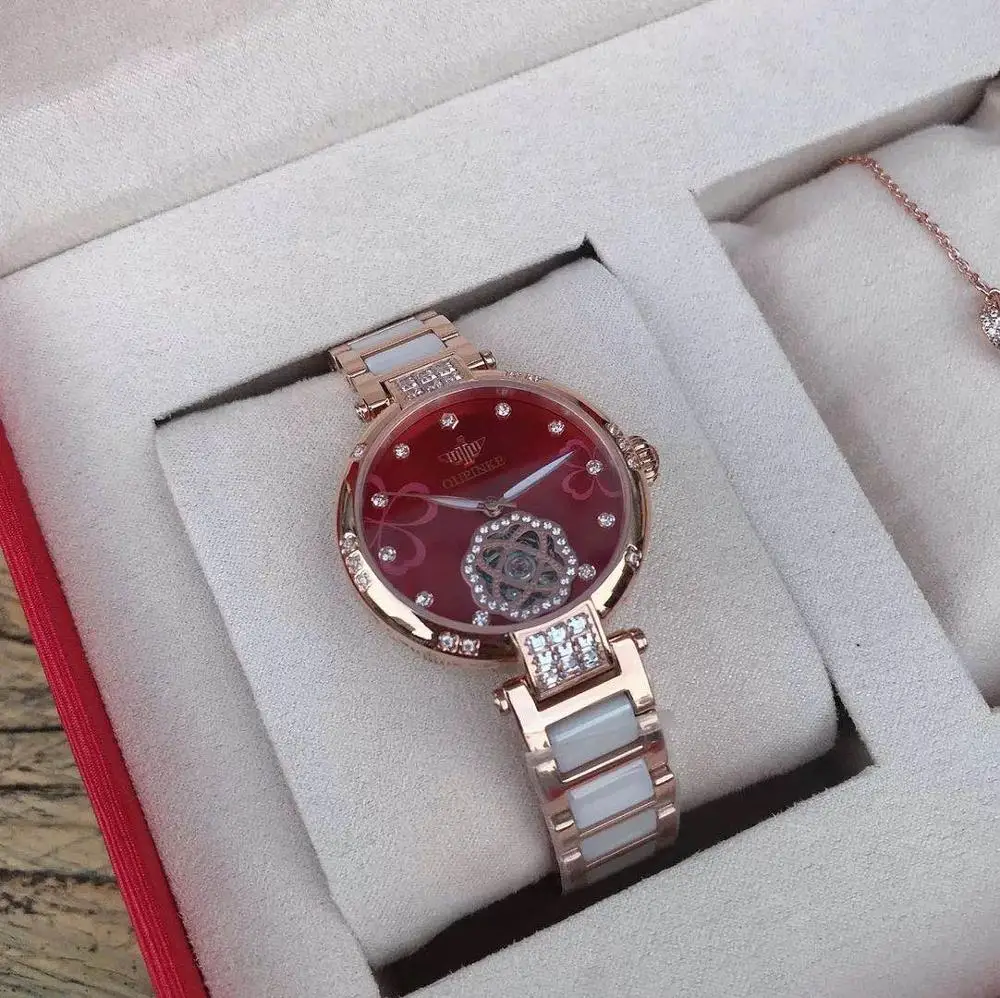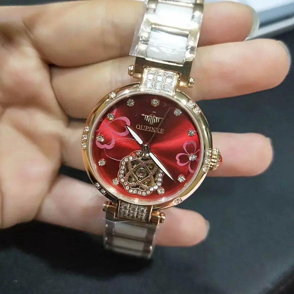 OUPINKE-reloj mecánico de moda para mujer, pulsera de diamante con zafiro de cerámica automático, resistente al agua, regalo para mujer 3183