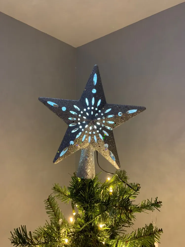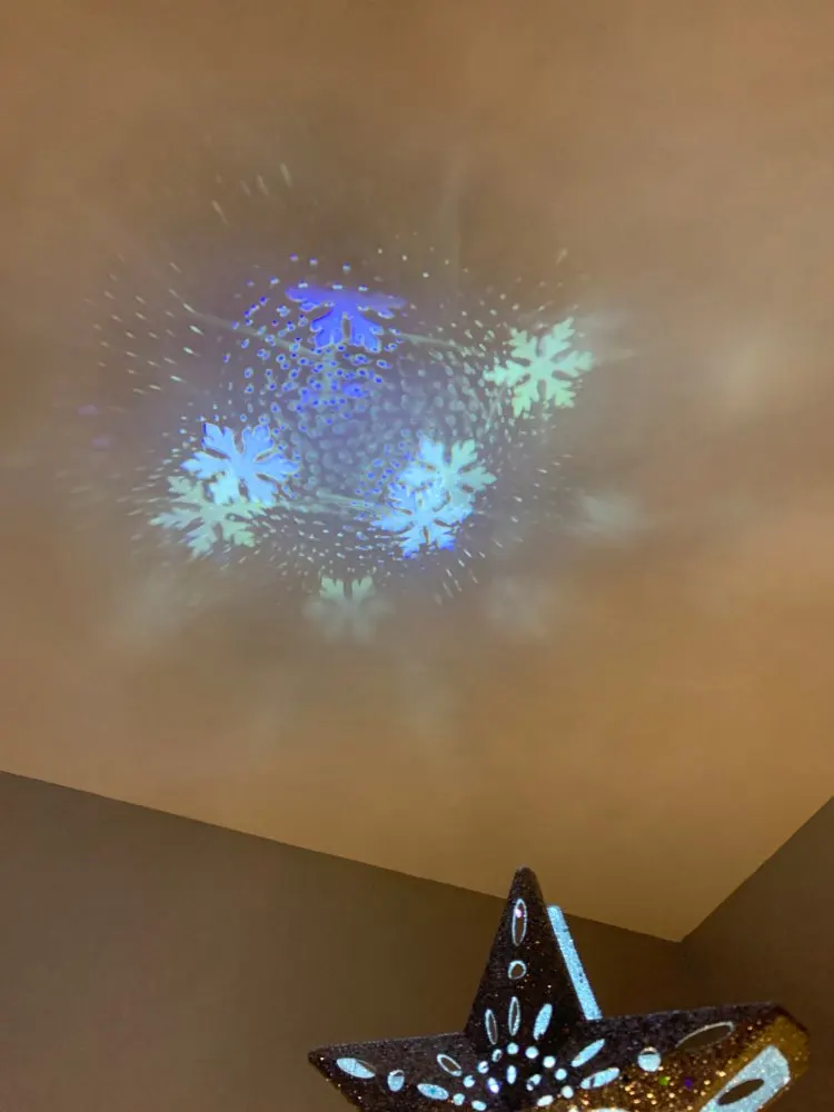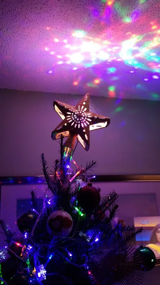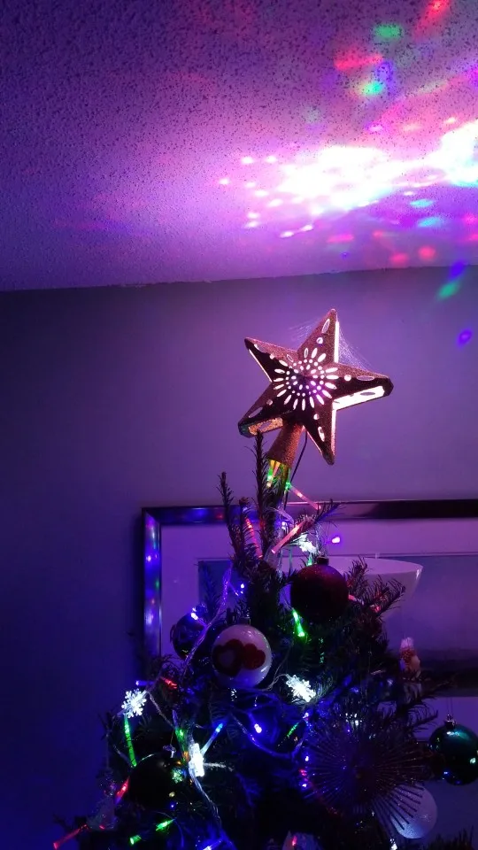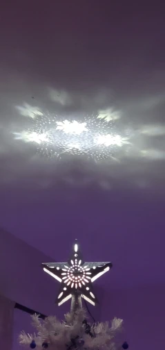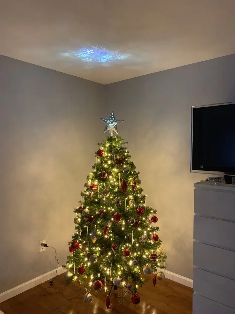 OurWarm-adorno de árbol de Navidad con estrella LED 3D brillante, adorno para árbol de Navidad láser con proyector de copos de nieve blanco giratorio incorporado