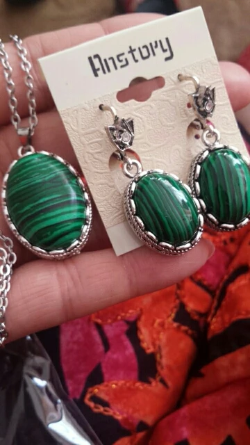 Oval Malaquita Collar Pendientes de La Joyería Para Las Mujeres de La Vendimia Hueco Flor Colgante Cadena de Moda De Acero Inoxidable Regalo TS273