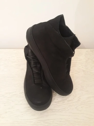 Owen Seak hombres zapatos de tacón alto botas de cuero genuino zapatillas deportivas de lujo vellosidades coriónicas botas de encaje Casual-Negro plano zapatos