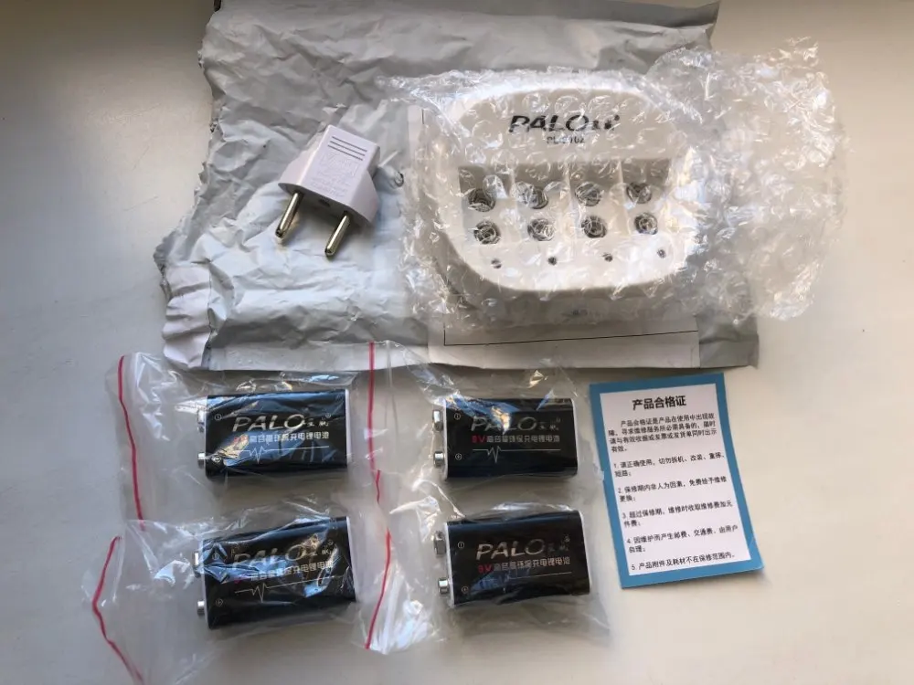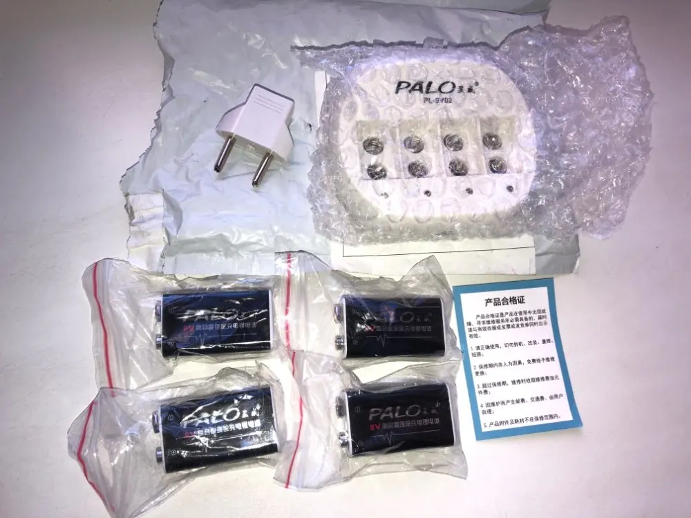 PALO-cargador de batería de iones de litio, 4 ranuras, 9V, 6f22 + 4 Uds., 600mah, 9v